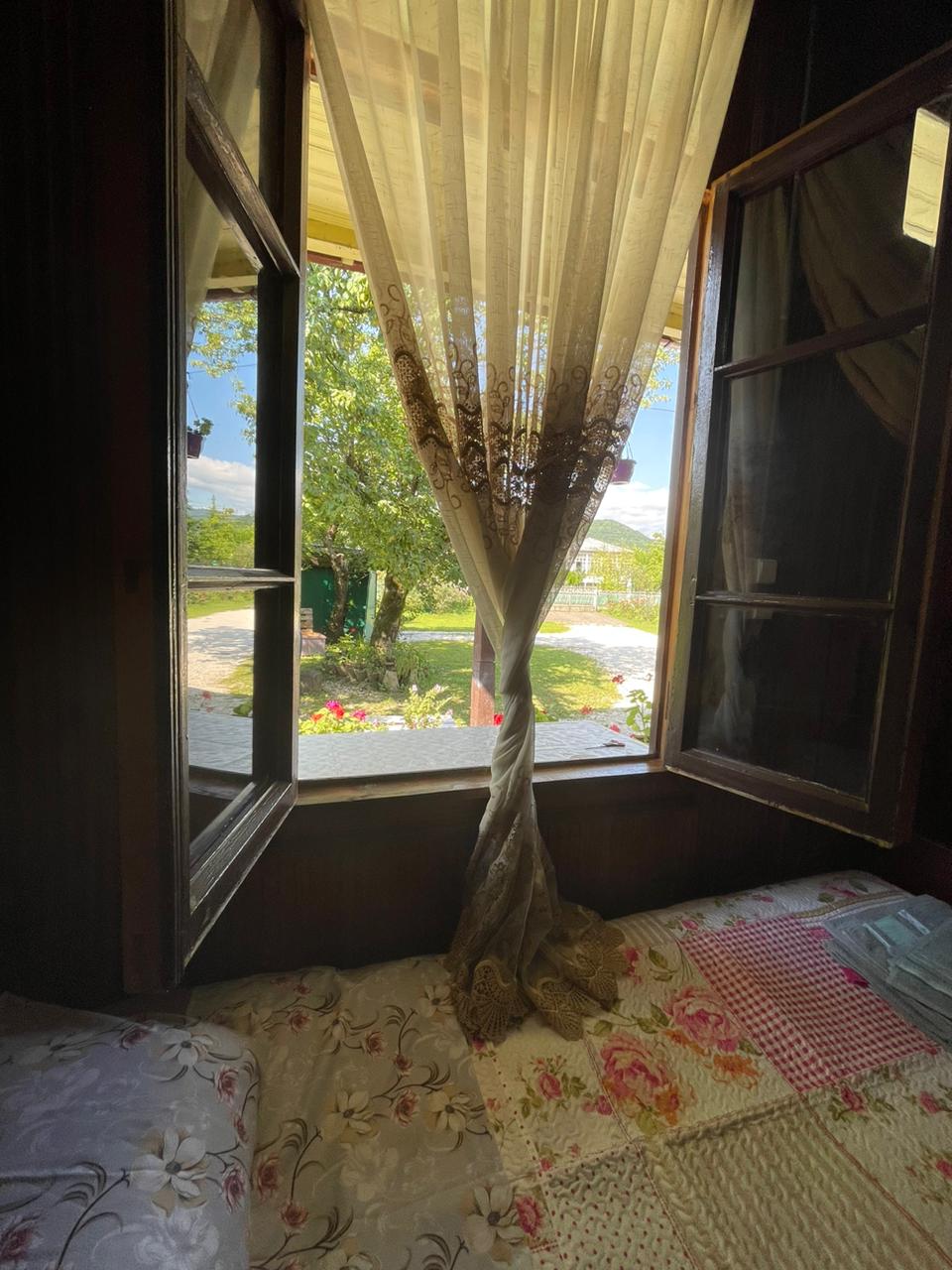 Discover unique living in a wooden cottage in tranquil rural Georgia. It is located in the middle of an orchard on the property of the guest house. This is for those who appreciate quiet, clean relaxation and a return to a simple and basic lifestyle. The house is environmentally friendly and only natural products, local materials and recycled raw materials are used. House in the middle of an orchard. 26 sqm with its own terrace and garden. We prepare breakfasts upon prior request.