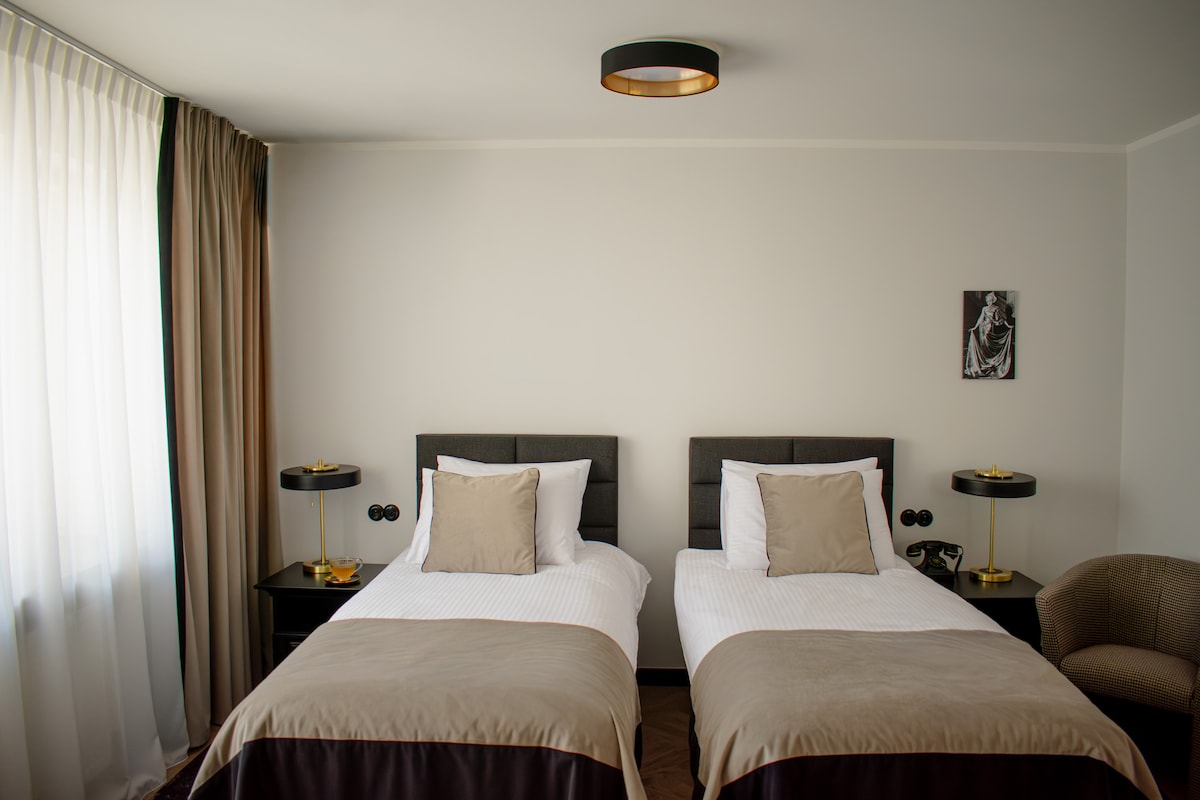 Pokój nastrojowy, jak piosenki „warszawskiego słowika” — pełen elegancji i przedwojennej nostalgii, zaprojektowany tak, aby sprawić wrażenie, że artystka właśnie opuściła pomieszczenie. Czarny kapelusz z szerokim rondem i fotografie na ścianach przybliżają postać artystki, oddając hołd jej dziedzictwu. Stylizowany radiobudzik wprowadzi Cię w krainę jej pięknego głosu. W pokoju dostępny zestaw powitalny (czajnik, ekspres do kawy, filiżanki) oraz mini bar.