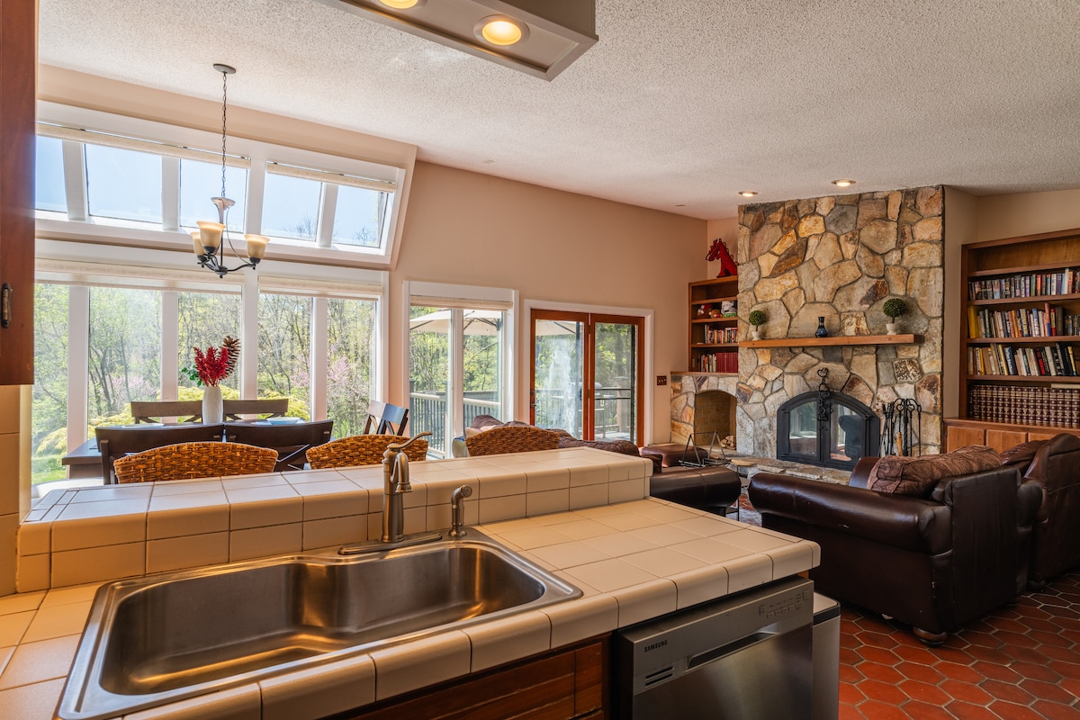 Stargazer ist der perfekte Ort, um dem Alltag zu entfliehen! Die Stille und Gelassenheit, in einem Vogel- und Wildtierschutzgebiet zu wohnen, ist so gut für deine Seele. Beobachte den Sonnenaufgang von einem hängenden Korbsessel in 2700 Fuß Höhe oder warte auf den Mondaufgang und genieße die spektakuläre Aussicht auf die Sterne! Entspanne dich nach einem Tag voller Wanderungen und einer Mahlzeit im Freien auf der Terrasse in der Sauna. Röste S'mores am Feuertisch auf der Terrasse oder über der Feuerstelle im Seitenhof. In diesem Refugium auf dem Berggipfel liegt Magie in der Luft!