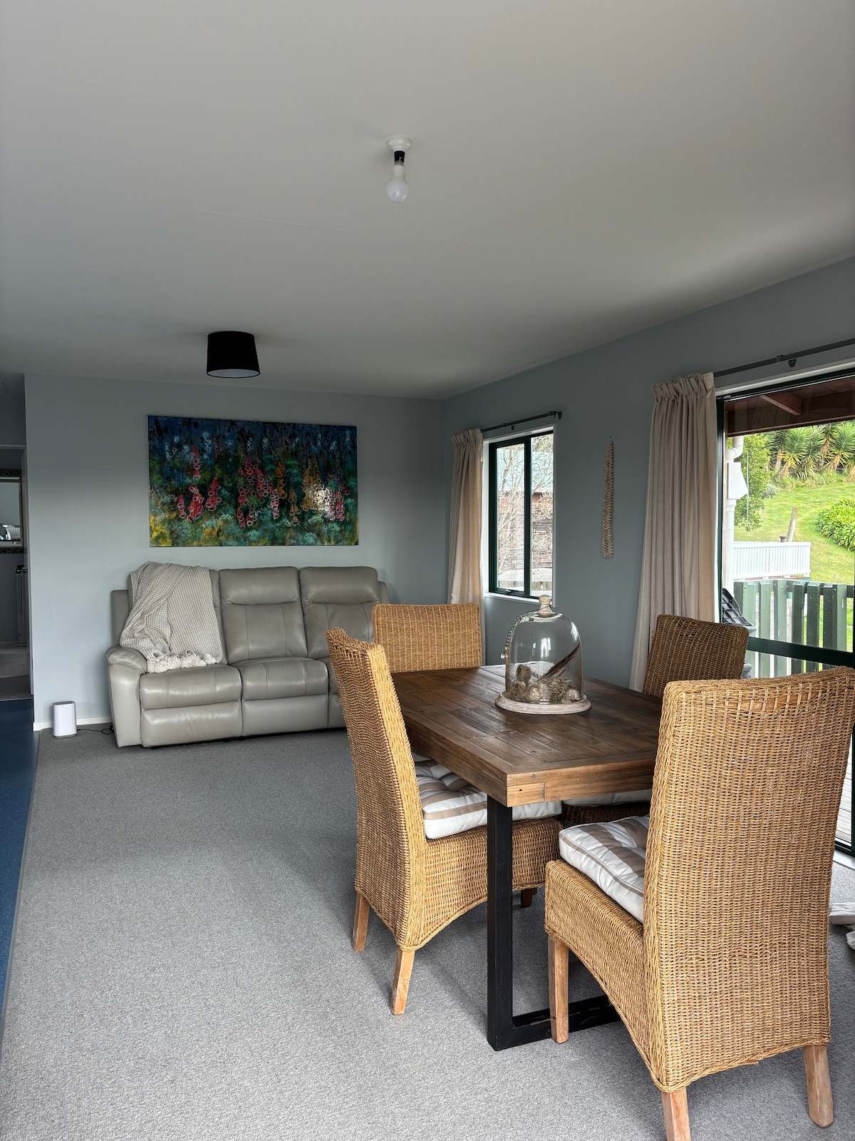 The house for all seasons, occasions and ages. Double glazed with new thermal curtains. Heat pump and log burner in downstairs living room and heatpump in upstairs bedroom to keep you cosy in winter and cool in summer. The grounds are spacious and private. Great for playing games, BBQ and evening drinks on the sun-drenched deck or in front of the outdoor fireplace. Toys, board games, bikes and sports equipment are provided. Prior approval for pets is required ($20 per stay)