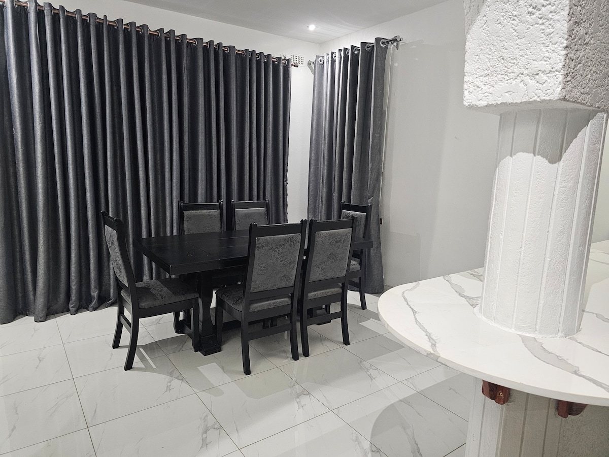 Escape to Serenity - sichere und geräumige Gästehäuser in einer ruhigen Umgebung“ „Erlebe den ultimativen Rückzugsort in unseren wunderschön eingerichteten Gästehäusern in einer ruhigen Gegend mit niedriger Dichte. Genieße ausreichend Parkplätze mit Sicherheit, die dir absolute Sicherheit bieten. Die wichtigsten Merkmale: •Kostenloses WLAN • Solar-Backup •konstante Wasserversorgung • Warmwassergeysire •Kühlschränke •Fernseher •Mikrowellen •Kessel •sicherer Parkplatz •Sicherheit