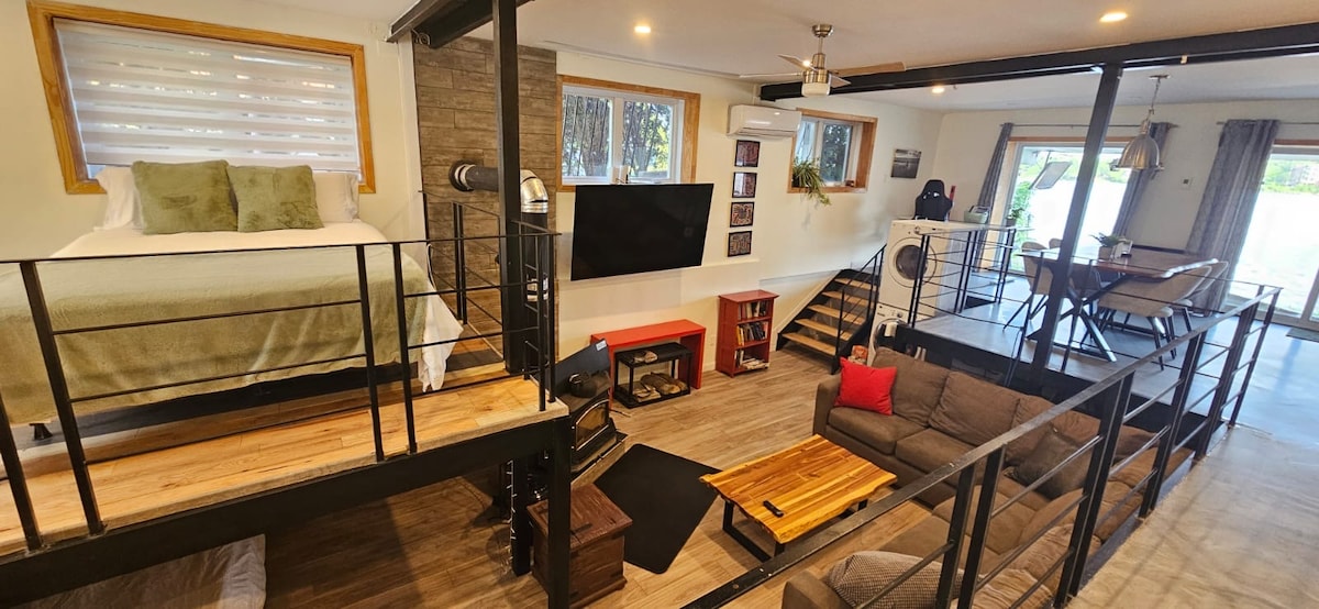 Modernes Loft auf Baumhöhe, in einem charmanten Dorf vor den Toren der Natur, in der Nähe von Shawinigan. Ruhiger Aufenthalt in einer hellen und gut ausgestatteten Unterkunft, ideal zum Entspannen nach einem Tag voller Abenteuer im Nationalpark. Sein zeitgemäßes und einladendes Dekor schafft eine perfekte Atmosphäre, um sich zu erholen und den gegenwärtigen Moment zu genießen. Das Loft ist für Reisende konzipiert und komplett ausgestattet: Es fehlt nur noch Sie... und Ihr Koffer! CITQ 302990 — Ablauf 31.05.2026