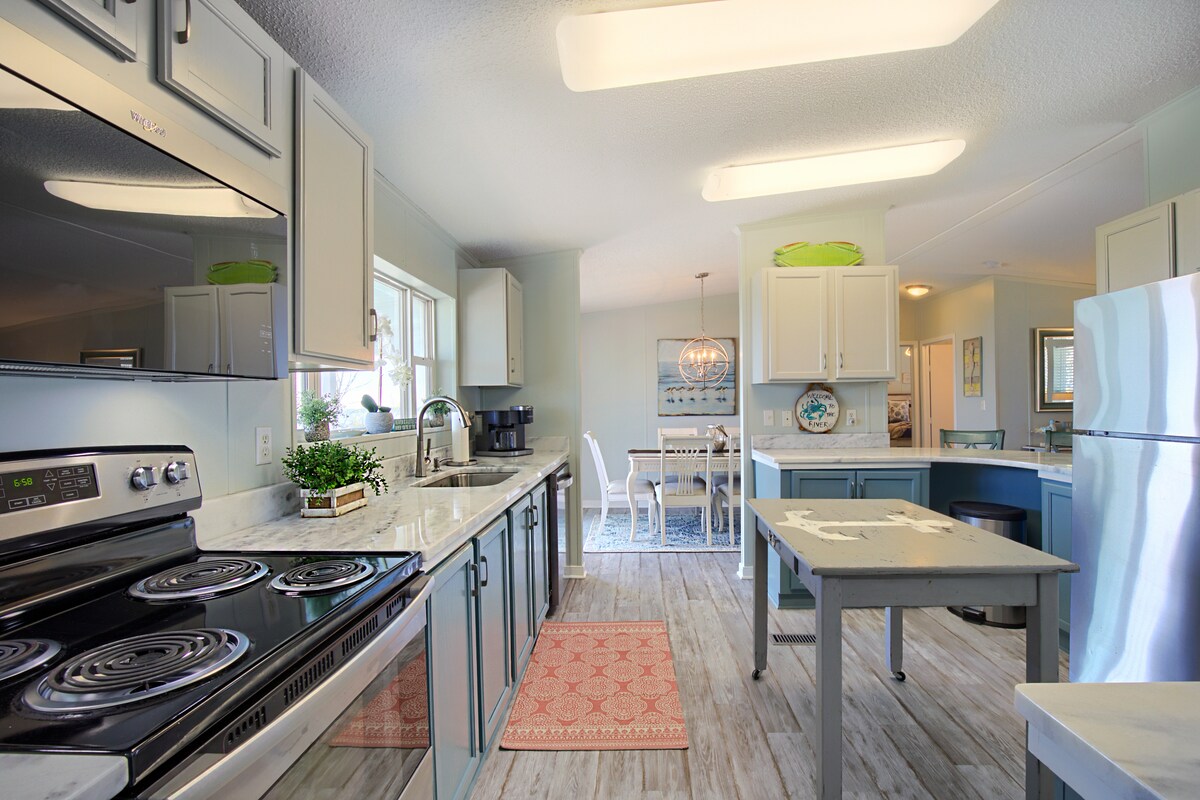 Entspannen oder loslegen! Das Nook ist ein stilvolles, gemütliches Ferienhaus mit großem Innen-/Außenbereich. Mit Blick aufs Wasser und Zugang einschließlich Pier und Bootsrampe genießt du deinen Kaffee auf dem Deck, bevor du in einem der beiden Kajaks oder Kanus aufs Wasser gehst oder eine Radtour (4 verfügbar) genießt, um die Natur hautnah zu erleben. Fange Fische, Krabben oder hol dir einfach nur einen Sonnenbrand, während du die Zeit auf dem Wasser genießt. Wenn du bereit bist, gibt es in den nahegelegenen Städten viel zum Einkaufen, Essen und Strandbesuchen! Alles abgerundet mit einem Sonnenuntergang über dem Wasser!