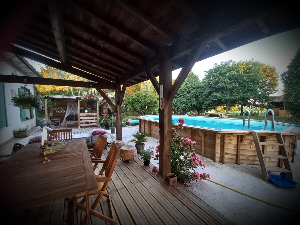 Cette jolie maison landaise est nichée au cœur de l’Armagnac ! Le calme et la beauté des paysages en font un gage de repos pour mieux se ressourcer ! Depuis 8 ans, nous le rénovons sans cesse, et pouvons dire aujourd’hui qu’elle est de tout confort : tout est neuf, et elle vient d'être équipée d'une piscine et de la clim! Nos ados adorent y aller et nous passons d’excellents moments en famille. Nous souhaitons de tout cœur vous en faire profiter ! Le bonheur est vraiment dans le pré !