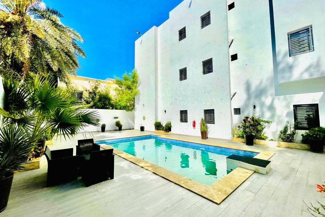 Situé dans le quartier prisé de Tevragh Zeina a Nouakchott La résidence est composé de 12 appartements composés chacun d’une chambre à coucher moderne, d’un salon avec un téléviseur à écran plat et un coin bureau, d’une cuisine entièrement équipées, et d’une salle de bain privative. Tous les appartements sont climatisés . Vous bénéficierez gratuitement d’une connexion Wi-Fi , d’un parking sur place,d'une piscine extérieure , d'une terrasse ,une et un centre de remise en forme.