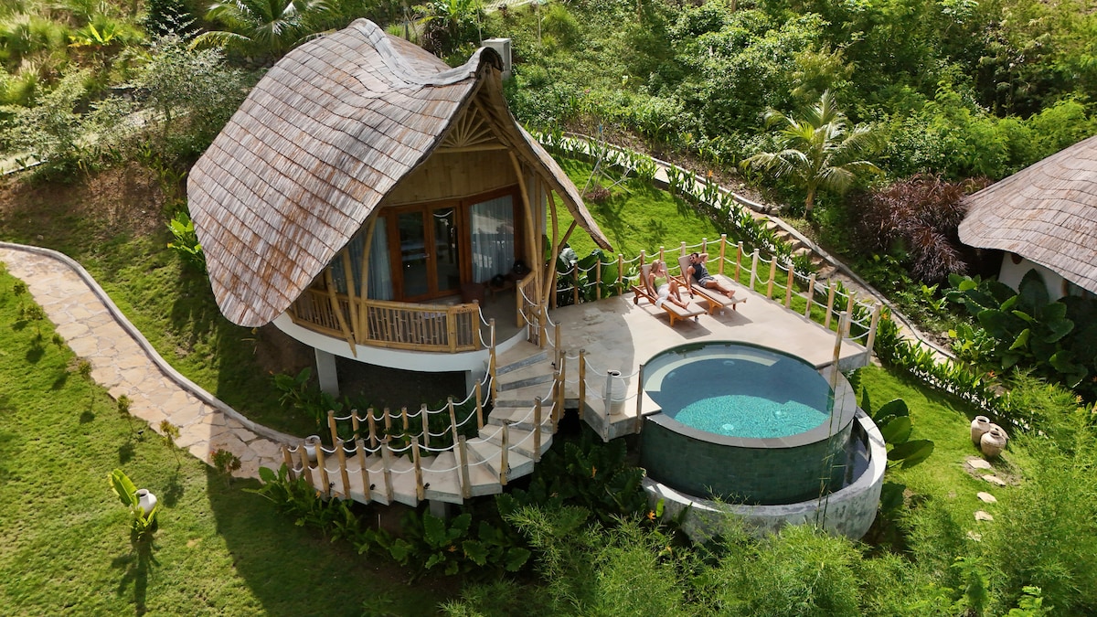 Ausflug ins Paradies an unserer Villa Lombok mit 3 Schlafzimmern und 3 Schlafzimmern! Umgeben von der Natur, genießt du ultimative Ruhe und Beschaulichkeit. Die Villa bietet einen atemberaubenden Meerblick, einen Infinity-Pool und luxuriöse Annehmlichkeiten, darunter eine voll ausgestattete Küche, komfortable Schlafzimmer mit eigenem Bad, Klimaanlage, heißes Wasser und Toilettenartikel aus der Region. Bleiben Sie mit zuverlässigem WLAN in Verbindung und genießen Sie die Sicherheit unserer Solar-Stromversorgung, die die Villa mit Ausnahme von Klimaanlagen mit Strom versorgt.
