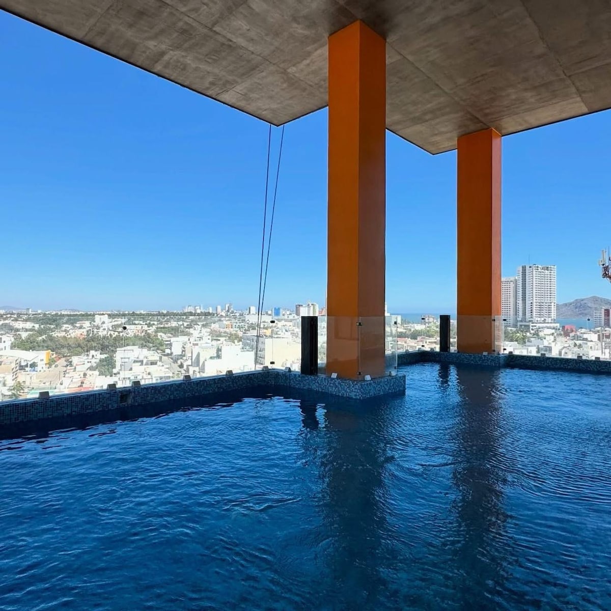 Experience Mazatlan from our modern high-rise condo with breathtaking sea and downtown views. This exquisite apartment space comfortably fits 6-8 guests. Enjoy a private balcony, a full kitchen, and access to a stunning rooftop infinity pool. Perfectly located near the beach, historic downtown, and the famous Carnival route, it's your ideal urban retreat.