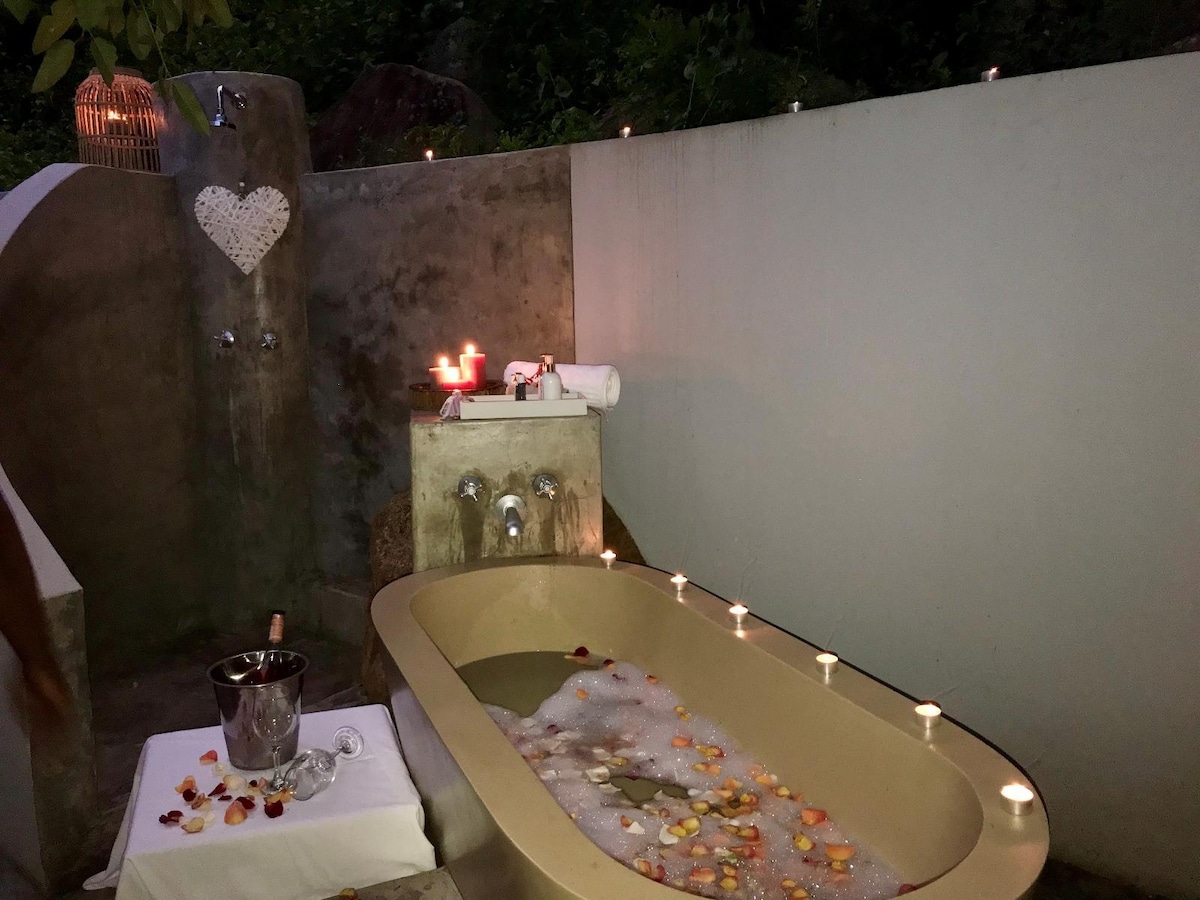 Ein Strohdach, eine Schlafzimmereinheit bestehend aus 2 Einzelbetten oder einem Kingsize-Bett. Dieses Zimmer verfügt über ein offenes Badezimmer mit einer Dusche, WC und Waschbecken. Die Küchenzeile besteht aus einem Kühlschrank, einer Mikrowelle und einem Wasserkocher mit allem Besteck und Geschirr, das du benötigst. Gäste, die in dieser Unterkunft übernachten, speisen in der Regel auswärts oder bestellen bei Mr Delivery. Die Unterkunft verfügt über einen entspannenden Garten und eine reiche Vogelwelt. Den Pool findest du auf der Terrasse mit Blick auf das spektakuläre Buschland.