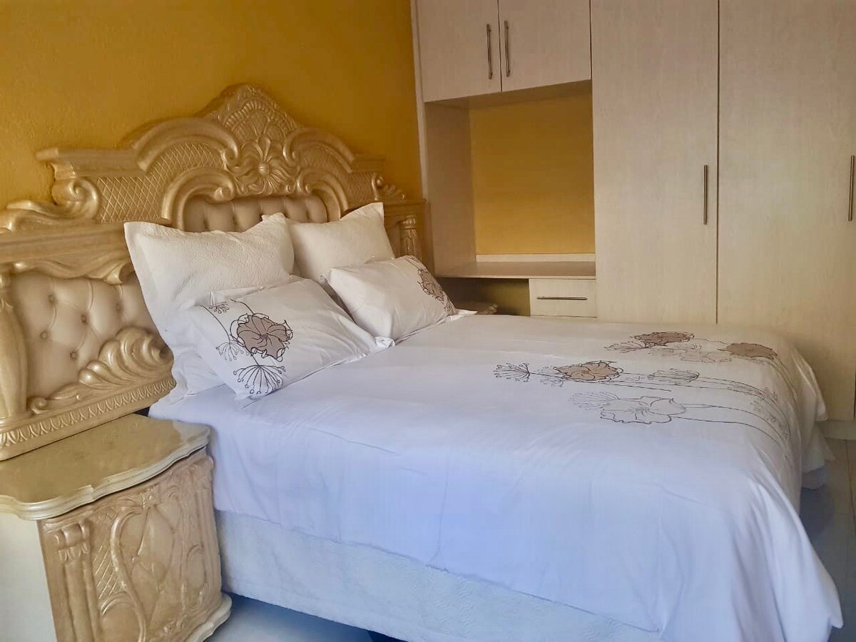 Geräumige Unterkunft zur Selbstverpflegung mit einem Schlafzimmer und integriertem Braai auf der Veranda. Separater Eingang und überdachter Parkplatz. Kleiner Garten. Auf dem gleichen Gelände wie köstliches Monster. Kleiner eingebauter Safe für den persönlichen Gebrauch.