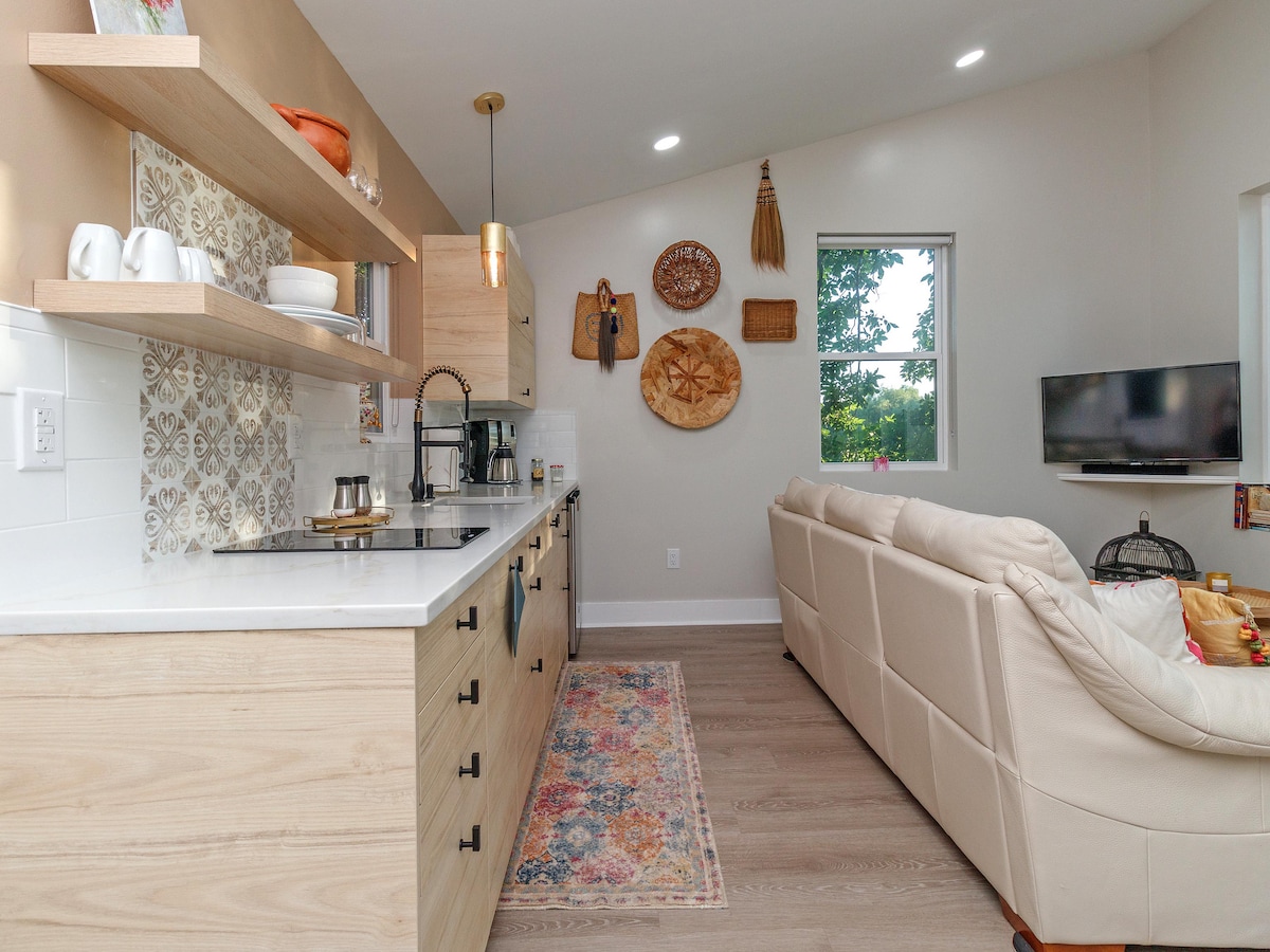 Betrete das 6 Hektar große Grundstück durch den abgeschlossenen Eingang, über die Bachbrücke, zum Gästehaus, genieße Annehmlichkeiten wie Internet mit WLAN, Tesla-EV-Ladegerät, vorderer Terrassenbereich mit Sitzgelegenheiten und Grill, überdachter Pavillonbereich mit Sitzgelegenheiten, Feuerstelle und TV mit Blick auf kleinen Bach, haustierfreundlich eingezäunter Bereich, das Innere des Gästehauses ist warm und einladend mit 12' hoher Wohnzimmerdecke mit vielen Fenstern für dieses offene Gefühl, voll ausgestatteter Küchenbereich, stapelbarer Waschmaschine und Trockner, 2 individuellen Schlafzimmern und 1 voll ausgestattetem Badezimmer.