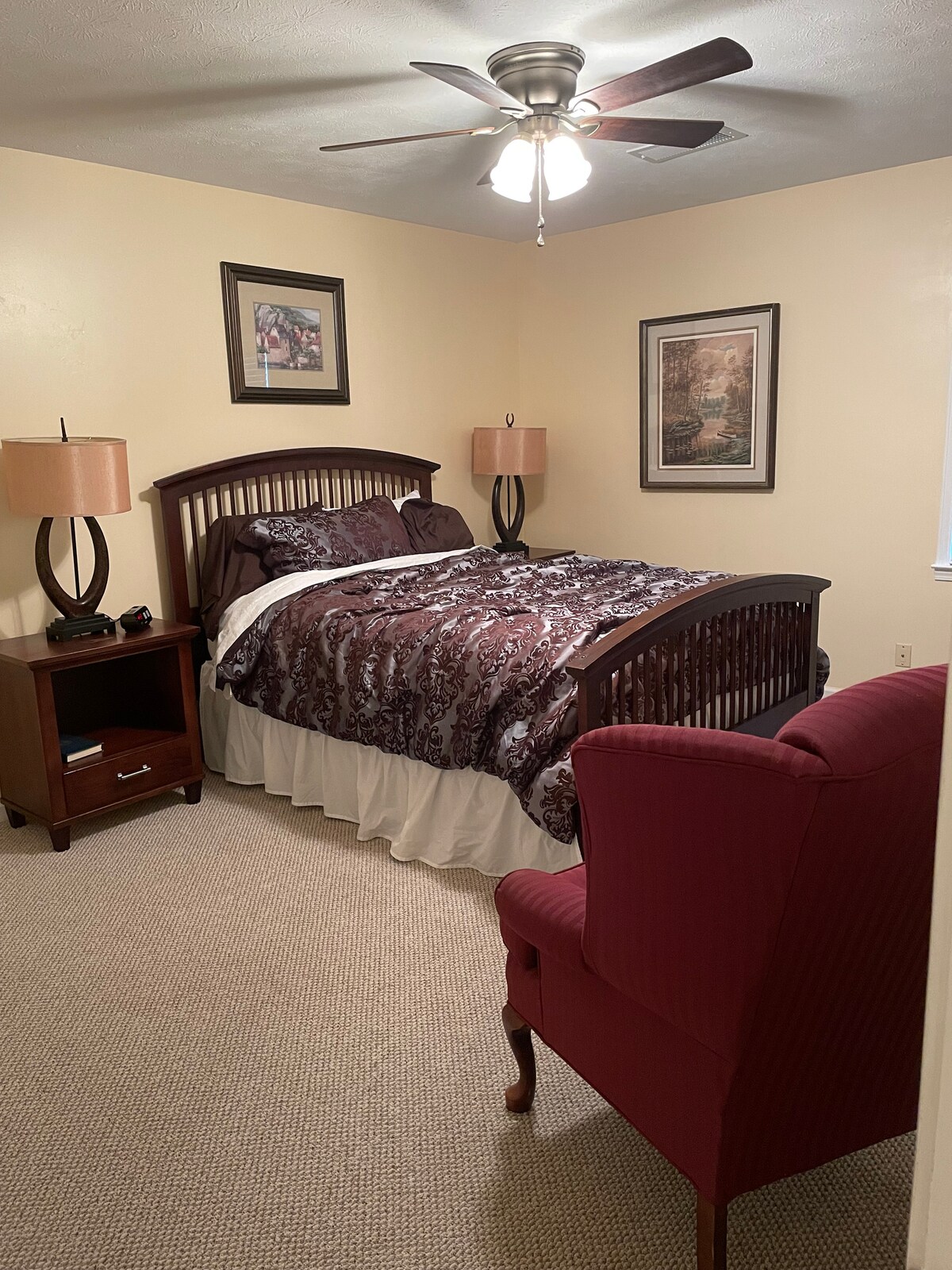Dieses 2-Zimmer-Duplex in der Innenstadt von Paducah liegt zentral zu allem, was Paducah zu bieten hat! 2 Schlafzimmer mit Queensize-Betten, eine große Wohnküche und eine Waschmaschine und ein Trockner. Bleibe ein Wochenende oder eine Woche. In der Nähe des Baptistenkrankenhauses, des Einkaufszentrums und der Innenstadt von Paducah. Voll ausgestattete Küche mit einem großen Kühlschrank sowie Kaffee, Tee, Snacks und einer Auswahl an alkoholfreien Getränken sind vorhanden. In der Nähe der I-24, damit du schnell rein- und rauskommst!