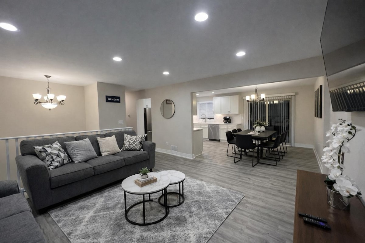 Willkommen in der Unterkunft mit 1 Schlafzimmer und 1 Badezimmer am Fox River! Es bietet ein Kingsize-Bett im Schlafzimmer und ein Schlafsofa im Wohnzimmer mit Kathedralendecke. Das Haus ist perfekt für Paare, Familien, Alleinreisende. Voll ausgestattete Küche mit Geräten und Essentials für Ihren Komfort. Zur Unterhaltung gibt es einen Billardtisch im Keller für ein freundliches Spiel oder eine Terrasse mit Blick auf den Fluss für Spaß im Freien. Das Haus ist 10 Gehminuten vom Bahnhof Cary Metra entfernt und bietet einfachen Zugang zur Innenstadt von Chicago. Außerdem ist es in der Nähe von Einkaufsmöglichkeiten und Restaurants.