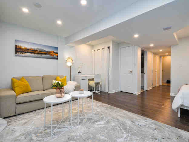 Welcome to our newly designed private basement apartment in a peaceful Vaughan neighborhood. Enjoy easy access to Kleinburg, McMichael Art Gallery, Kortright Centre, Vaughan Mills, Pearson Airport, Cortellucci Hospital, Canada’s Wonderland, highways 400 and 427, and the Vaughan Subway Station. Featuring brand-new appliances, stylish furnishings, two queen beds, in-suite laundry, a workspace, full bathroom, and two parking spots (EV charging available!)—ideal for a relaxing, productive stay.