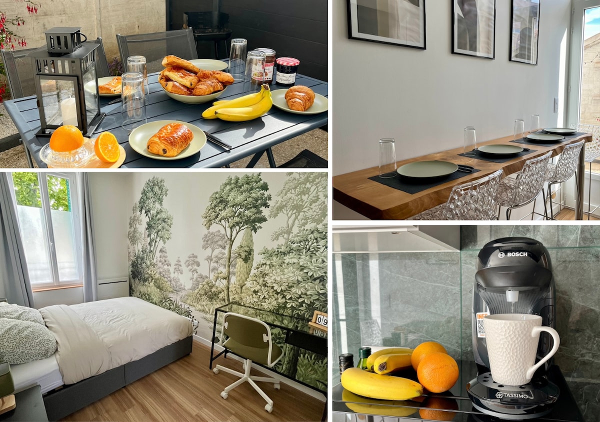 Die Wohnung liegt im Erdgeschoss und ist ruhig. Sie verfügt über eine eigene Terrasse. Sie empfängt Sie mit allen notwendigen Einrichtungen, um sich wie zu Hause zu fühlen, mit WLAN (Glasfaser) und zusätzlich dem Parkplatz „Stadtzentrum“, der Ihnen angeboten wird (2 Schritte von der Wohnung entfernt)! Diese Wohnung ist ideal für einen touristischen Aufenthalt zu zweit oder mit der Familie oder auch für die Arbeit. Sie befinden sich im Zentrum und in völliger Freiheit!