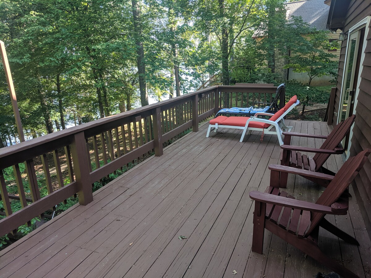 This house is surrounded by growth. High trees provide shade while grilling out and the wooded lot gives a feeling of being somewhere much more remote. There are exactly seventy stairs to the water. The dock provides a great place to relax and eat and drink. The water off the dock is 7ft deep, so jump right in. It is possible to tie a boat up to the outside of the dock so feel free to bring your own or rent one from the nearby Marina.