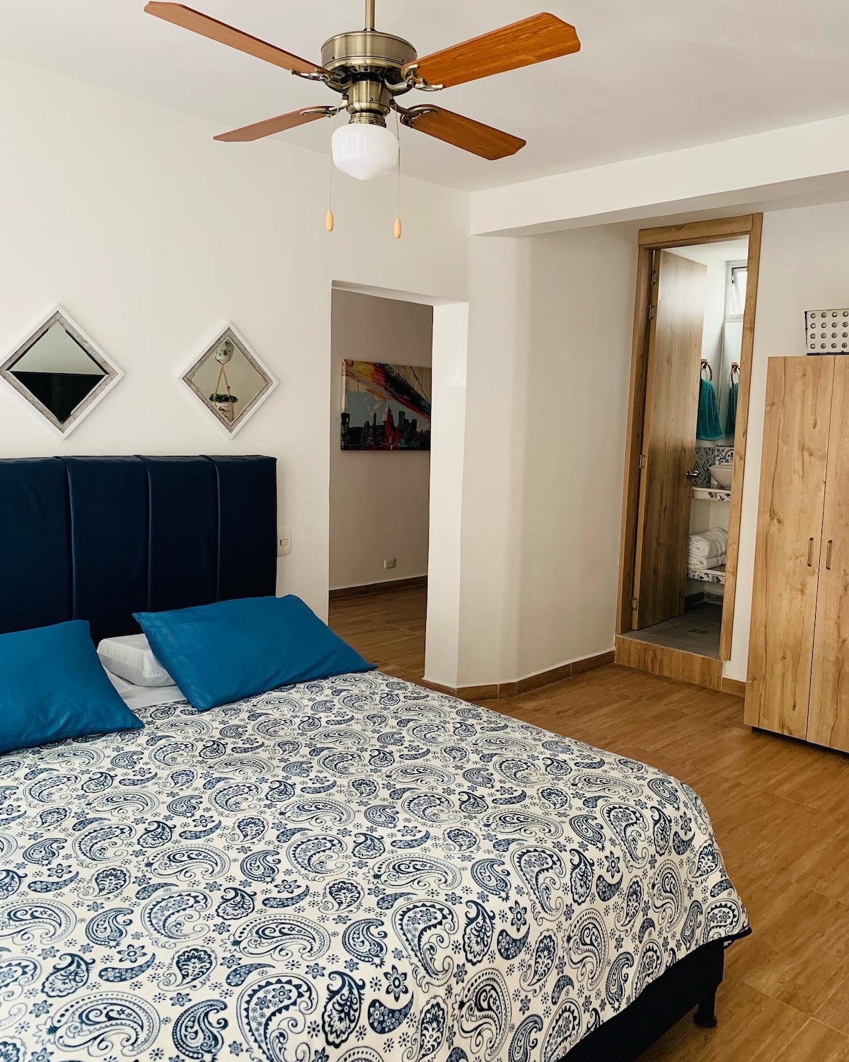 Zimmer mit eigenem Eingang innerhalb des Haupthauses. Vollkommen private Annehmlichkeiten für Gäste: ein Badezimmer im Schlafzimmer mit einem Doppelbett. Möglichkeit der Unterkunft für die dritte Person im gleichen Raum (Schlafsofa) Smart-TV, Kühlschrank, WLAN Die Wohnung ist mit Warmwasser ausgestattet. Gute Lage, ruhiger und wohnlicher Ort, zu Fuß erreichbar zu Restaurants, Cafés, dem Einkaufszentrum Unicentro und den Supermärkten. Einen Block von Carrera 70 entfernt und in der Nähe des U-Bahnhofs Estadio del Metro.