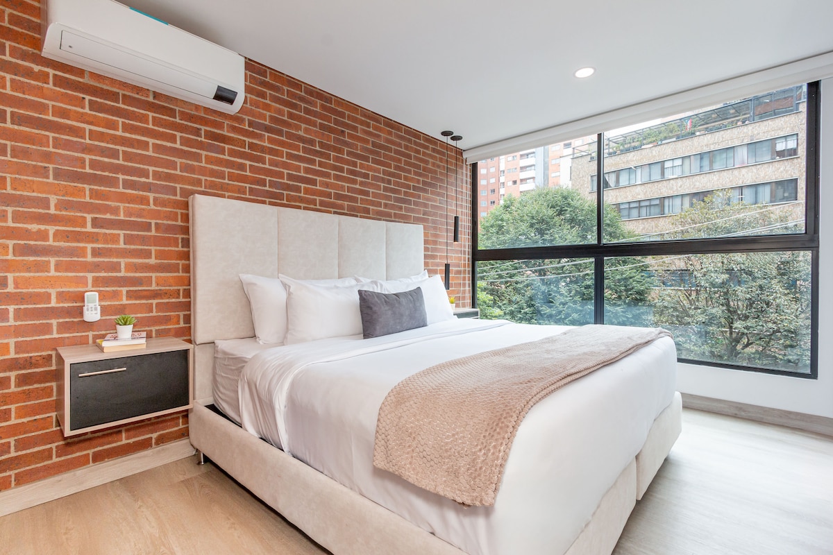 Diese erstaunliche Wohnung befindet sich in El Poblado, sie ist nah und zugänglich zu allem, ohne in der Mitte der Dinge zu sein. 30 Minuten vom Flughafen entfernt und nur 7 Minuten mit Uber nach Provenza und Parque Lleras, wo sich die besten Restaurants und Bars befinden. Das Gebäude, in dem sie sich befindet, verfügt unter anderem über einen Swimmingpool, einen Fitnessraum, Tagungsräume, ein Restaurant und einen Zimmerservice für das Frühstück. (optional) Ohne Zweifel eine der besten Unterkünfte in Medellin ;)
