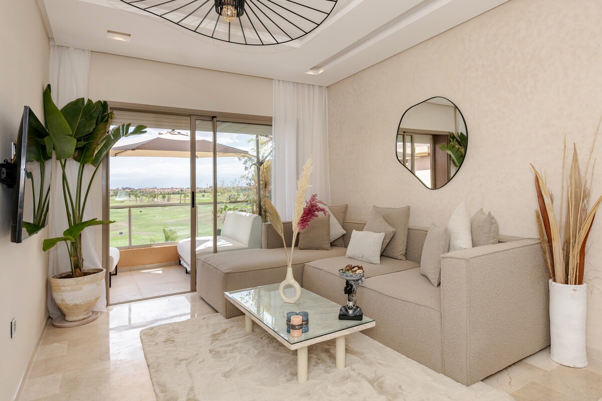 Wohnung ideal im Herzen von Marrakesch in einer sicheren Residenz mit Golfprestige gelegen. Sie werden: 5 Minuten vom Flughafen, 5 Minuten vom Einkaufszentrum Menara, 9 Minuten vom berühmten Platz Jamaa el fna, 5 Minuten vom Winterviertel 7 Minuten vom Viertel Gueliz. Die Residenz verfügt über ein Restaurant auf Golfplatzhöhe mit herrlichem Blick auf den Golfplatz, einen Spielplatz für Kinder, Grünflächen für ruhige Spaziergänge und einen See.