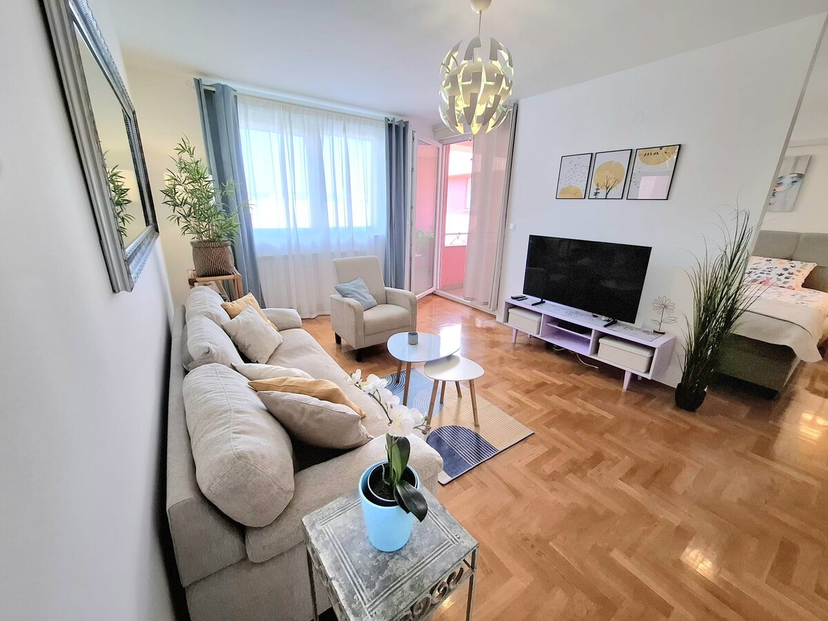 Schön eingerichtete Wohnung in einem neu erbauten ruhigen Wohnhaus in der Nähe des Zentrums von Pula. In der Nähe gibt es ein Einkaufszentrum mit vielen Geschäften und Supermärkten. Buslinien verbinden dich schnell mit dem Stadtzentrum und anderen Zielen. Sie befindet sich im dritten Stock eines neu gebauten Gebäudes mit Aufzug. Die Wohnung ist mit allen notwendigen Geräten ausgestattet und klimatisiert. Davor gibt es deinen eigenen kostenlosen Parkplatz. Du kannst deinen Morgenkaffee auf dem Balkon genießen!