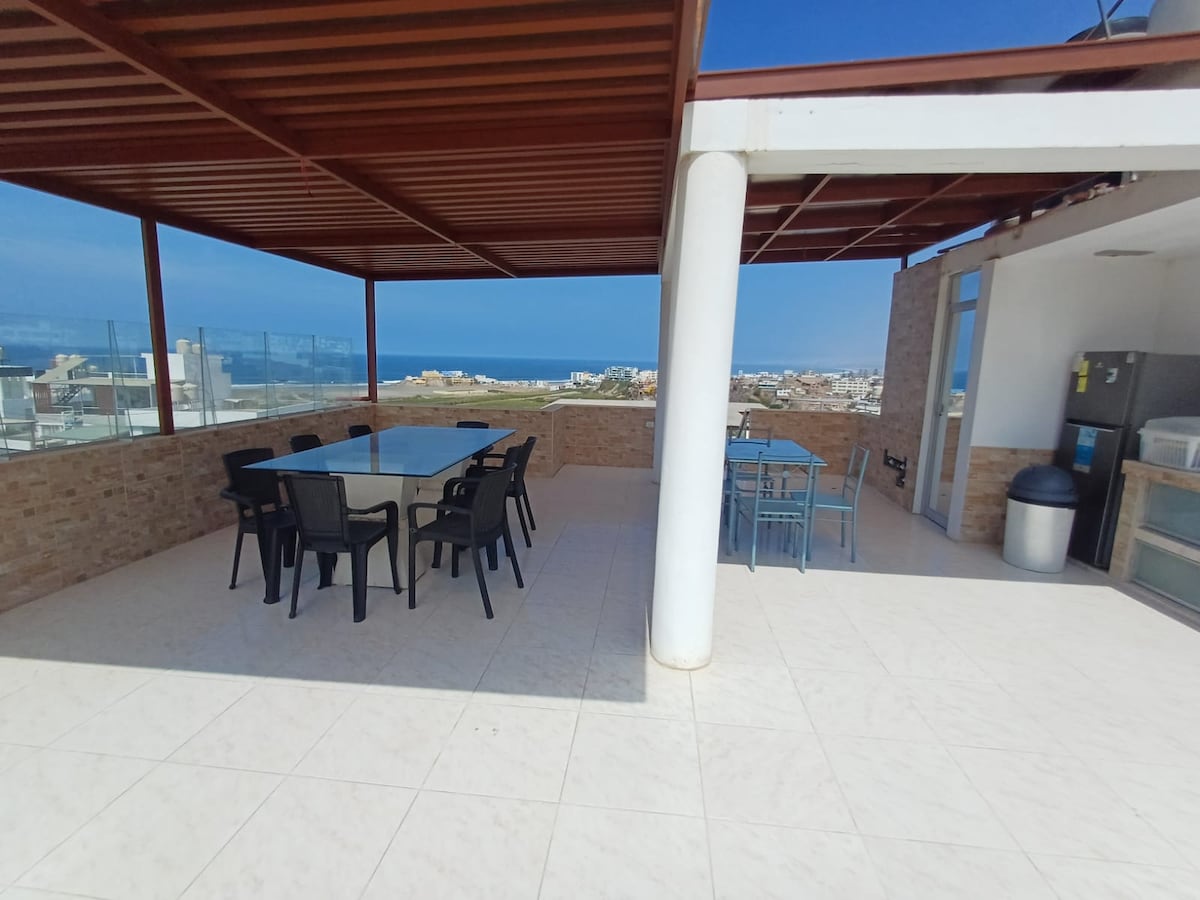 COSTA PALMERAS. Se alquila el 1er piso. ENGLISH SPOKEN Desconectate de tus preocupaciones en este espacio amplio y sereno. Acceso al primer piso y a la terraza de esta maravillosa casa, piscina de techo (a coste adicional), BBQ, lavadora, canchas, playa privada. Dependiendo del número de huéspedes se habilitan: 2 cuartos con 4 camas dobles y 2 cuartos con cama matrimonial. Ideal para una familia grande o teletrabajo en un lugar muy agradable. A 10 mins de Matarani, 7 de Mollendo o Mejia.