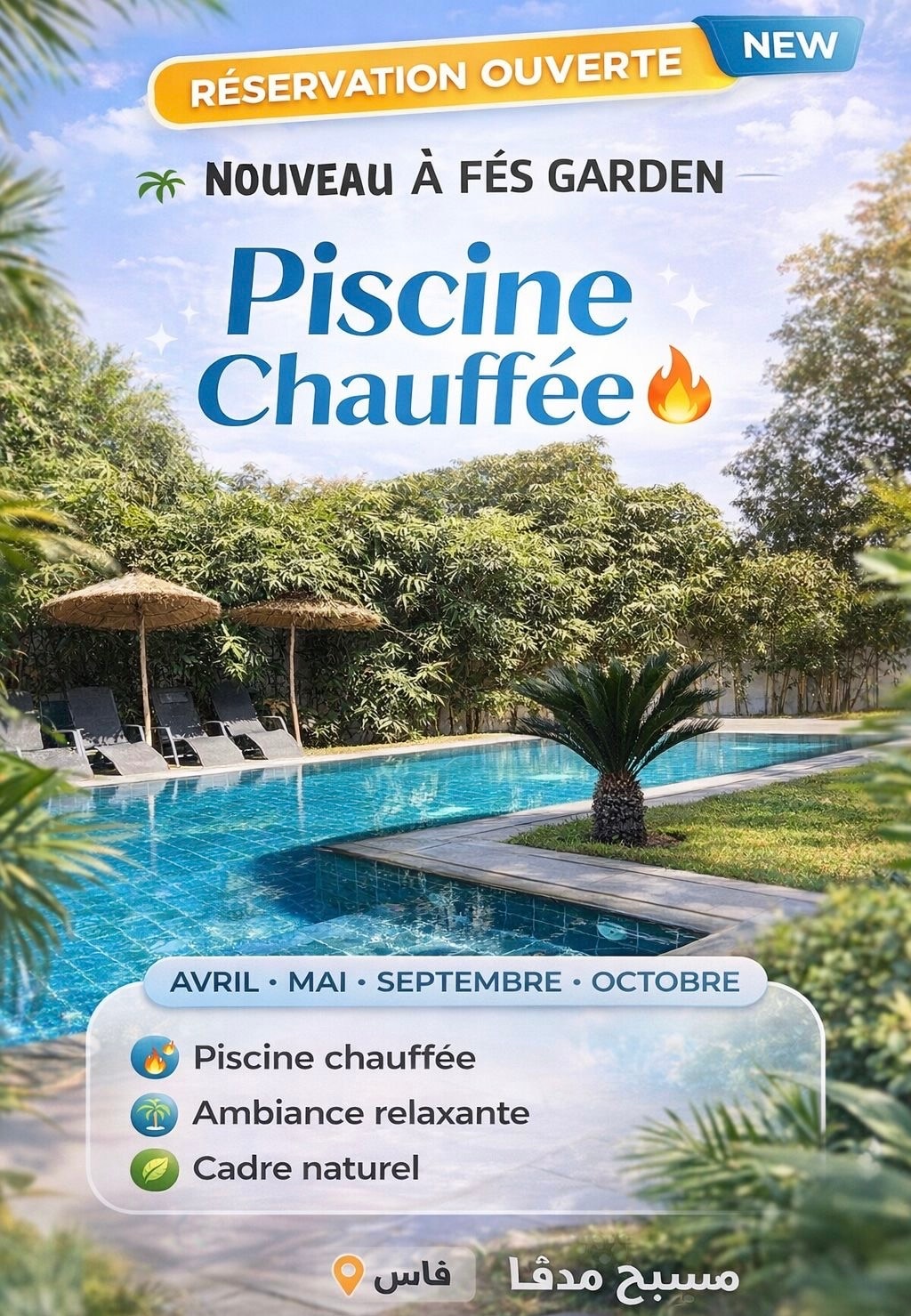 Bienvenue dans une villa où l’on se sent chez soi dès la première minute ! Située à Ain Chkef, dans un quartier calme et ultra sécurisé, idéale pour les familles, les retrouvailles entre proches ou les séjours entre amis. Ici, tout est pensé pour créer des souvenirs Un jardin d’oliviers apaisant pour les cafés du matin Une cabane rien que pour les enfants De grands espaces pour partager des repas et des rires La cuisinière est à votre disposition du matin au soir, selon vos besoins.
