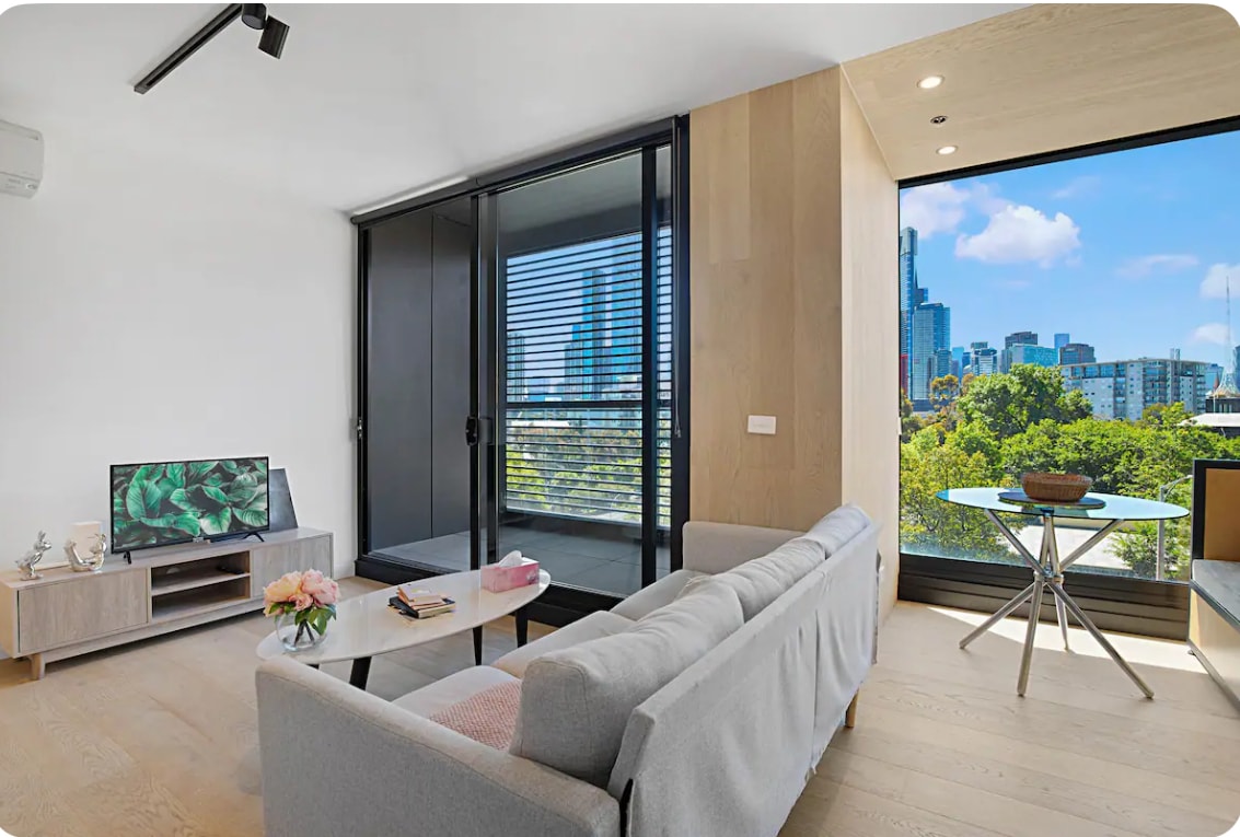 *40 night max stay with option to extend at owner’s discretion Unique getaway on the fringe of Melbourne with stunning city views from level 15 of The Emerald building. Park & bay views from the rooftop garden, with free BBQ and hot tub BBQ in the park out front too Enjoy dinner or drinks on your private balcony. Secure entrance to building Q bed & sofa bed options Walk to Rod Laver arena, Myer music Bowl, Botanical gardens, NGV, Arts Centre & CBD Anzac station NOW OPEN opposite No pets