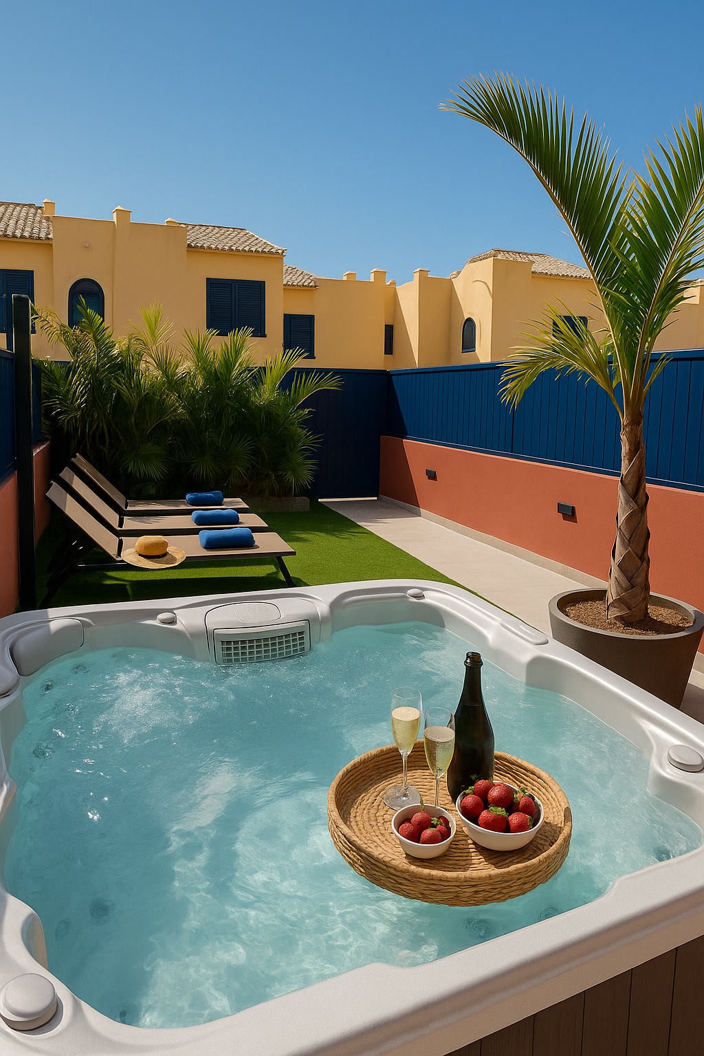 TropicalBlue ist eine angenehme Villa in einer ausgezeichneten Lage, nur 2 Gehminuten vom Strand Meloneras und einen einfachen 20-minütigen Spaziergang entlang der Promenade vom Hauptstrand in Maspolomas entfernt. Neben dem Golfplatz und der Promenade von Masplomas voller Freizeitaktivitäten. Der Komplex verfügt über einen großen Pool, einen Kinderpool und einen Whirlpool. TropicalBlue bietet Platz für bis zu 4 Gäste mit zwei Schlafzimmern im zweiten Stock. Hier findest du einen schönen Garten zum Chillen, Sonnenbaden sowie zum Genießen von Abendessen im Freien.