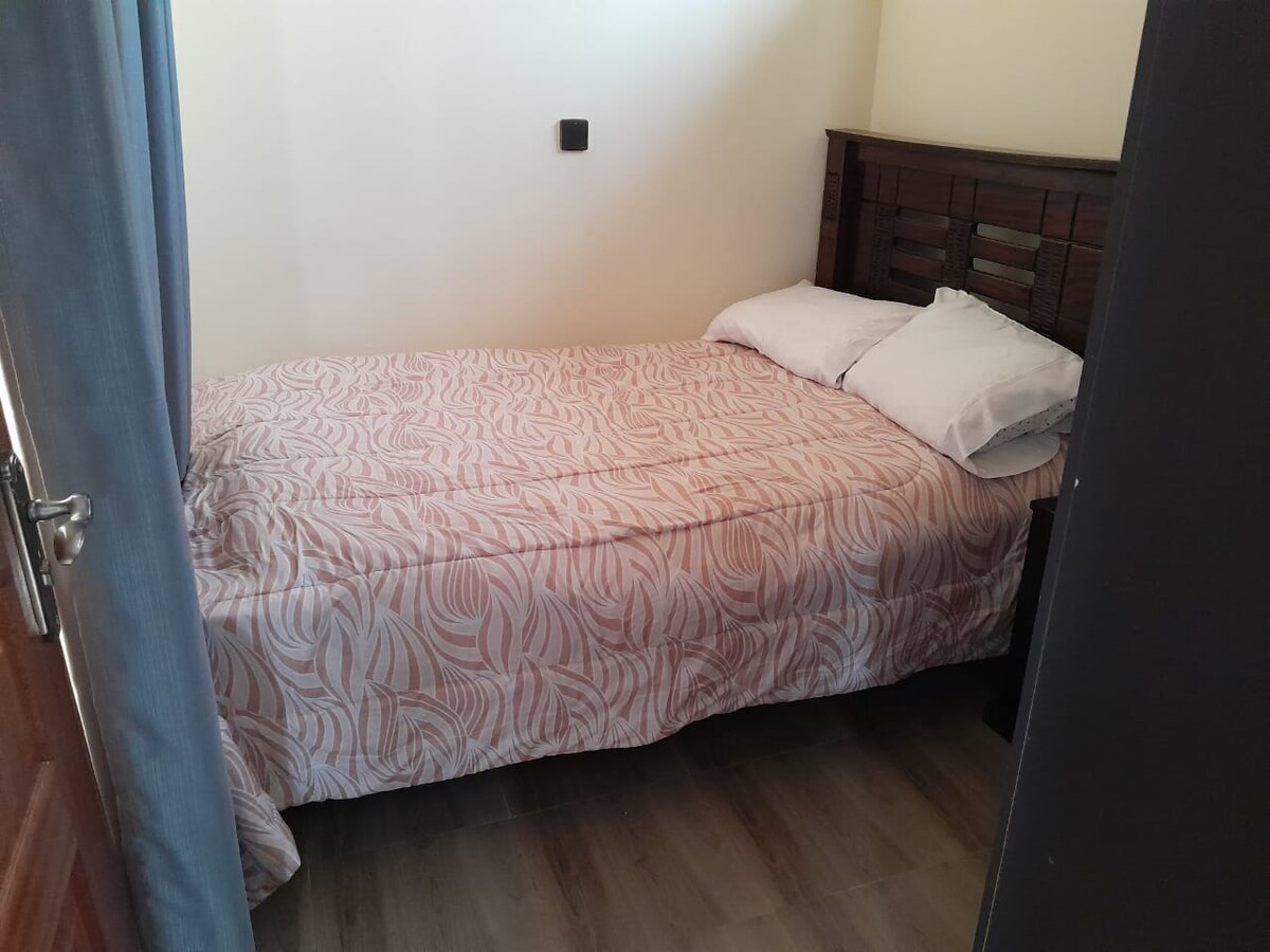 Entspanne dich bei diesem einzigartigen und ruhigen Kurzurlaub. Lehne dich zurück und entspanne dich in diesem ruhigen, stilvollen und sicheren Apartment mit einem Schlafzimmer in Naka,Nakuru,Kenia. Gäste, die bei uns übernachten, haben Zugang zu Netflix,WLAN, voll ausgestatteter Küche. Wir bieten unseren Gästen sauberes Trinkwasser,Toilettenartikel und eine Instant-Warmwasserdusche . Außerdem gibt es eine Vielzahl großer Einkaufszentren in unmittelbarer Nähe. In dieser Gegend sind Taxiservices (rund um die Uhr).