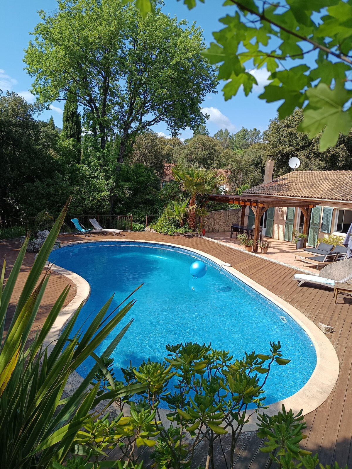Kommen Sie und entspannen Sie sich in einem komfortablen Ferienhaus mit Pool in der Nähe eines typischen Dorfes der grünen Provence im Var (83), zwischen Toulon und Brignoles, 30 Minuten von den Stränden der Côte d 'Azur entfernt. Es befindet sich im Erdgeschoss einer Villa und besteht aus einem großen Wohnzimmer, Schlafzimmer, separater Küche und Bad. Sicherer Pool von 50 m², der mit den Eigentümern geteilt wird. Große Terrasse und eingezäunter Garten von mehr als 4000 m², Parkplatz.