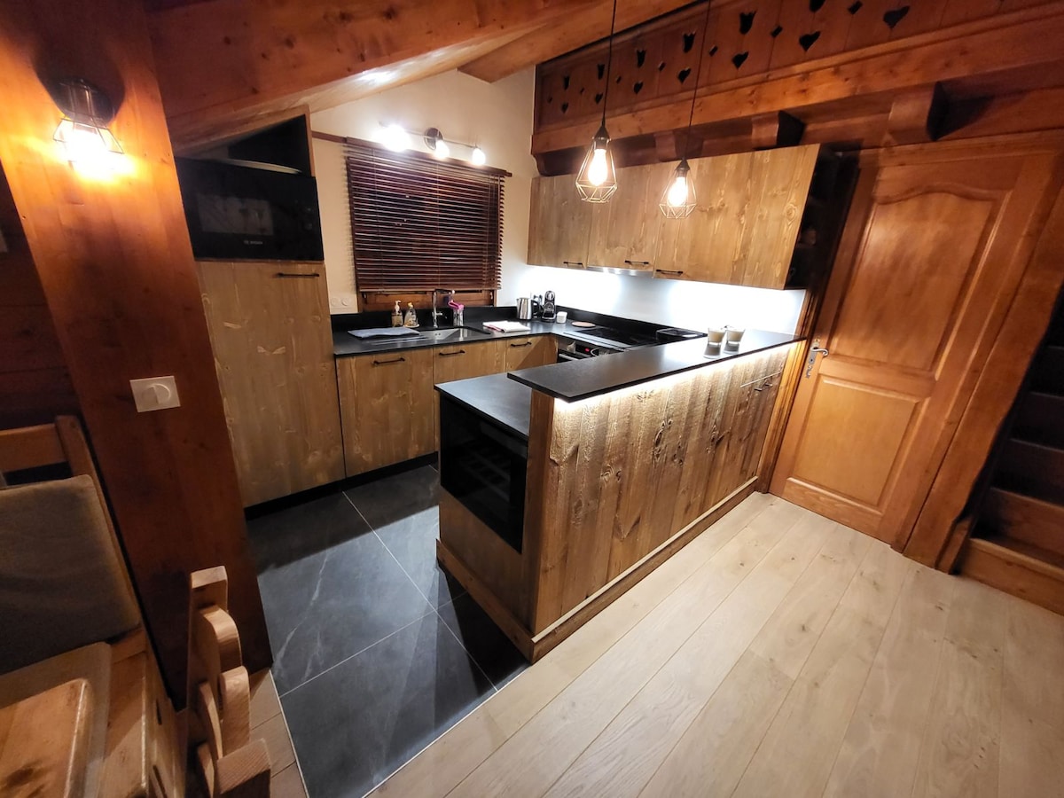 Diese wunderschöne Wohnung, komplett renoviert für 5 bis 7 Personen in einem prestigeträchtigen Chalet-Stil, in der 5-Sterne-Residenz Les Sources de Marie mit dem privaten SPA DEEP NATURE, bietet seltene und einzigartige Dienstleistungen im Dorf. Sie können alle Einrichtungen der Residenz (Fitnessraum, Sauna und Whirlpool) kostenlos nutzen und haben Zugang zu den Einrichtungen der Residenz Auberge Jérôme (beheizter Außenpool und -whirlpool, Hammam, Sauna und Fitnessraum).
