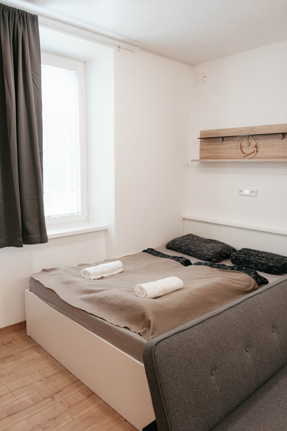 Wir bieten Wohnung 2 KK befindet sich im 1. Stock. 36m2. Das erste Zimmer Schlafsofa w140cm,Kleiderschrank, Küchenzeile. Das zweite Zimmer Ehemann, Bett 160cm, Schlafsofa, Kleiderschrank, Sitzgelegenheit.Küche-, Herd,Backofen,Kühlschrank, Wasserkocher,Geschirr, Esszimmer, TV, WLAN. Badezimmer Dusche,Waschbecken, Spiegel, Föhn.Die Wohnung befindet sich 10.nim vom historischen Zentrum, 3.min Bahnhof und Busbahnhof, 5.min Kino,Theater, Disco, Restaurant,Kinderpark und ein kleinerer Park ist auf der anderen Straßenseite. Wir bieten kostenlosen Kaffee/Tee sowie Wein und Bier gegen Gebühr an.