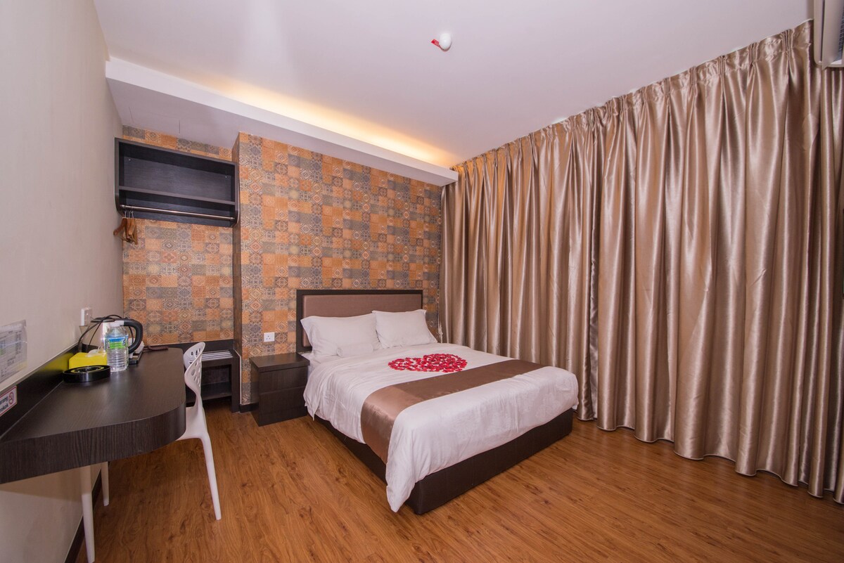 ro ist ein familienfreundliches Budget-Hotel in Kluang, das eine zentrale Lage und voll ausgestattete Zimmer mit Klimaanlage bietet. Alle Nichtraucherzimmer verfügen über einen Schreibtisch, Kaffee- und Teezubehör, einen Fernseher und vieles mehr. WLAN-Internetzugang ist rund um das Hotel verfügbar. In diesem Hotel gibt es kein Restaurant vor Ort, aber die Gäste können in der Nähe Mahlzeiten genießen. Oro liegt 4 Gehminuten von Sehenswürdigkeiten wie der Sunway Kluang Mall und 5 Gehminuten vom Bahnhof und Busbahnhof entfernt.