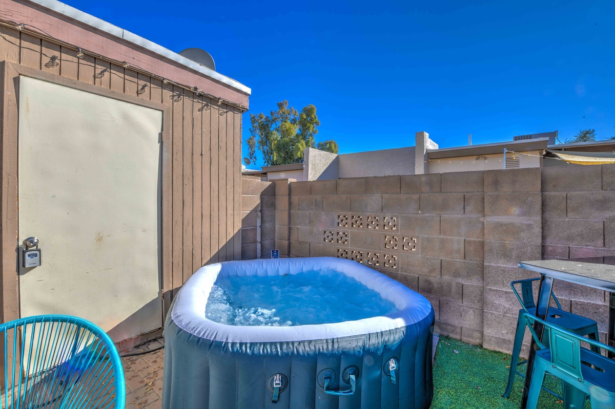 There's room for everyone at theCrashPad! Now with GOOGLE FIBER internet! ***INSIDE*** Newly remodeled with 3 bedrooms: 1. King Bed, Futon 2. Queen Bed 3. Bunk Room with 5 Twins All with super-comfy mattresses and SmartTVs! ***OUTSIDE*** Awesome private patio: - Full-sized Ping Pong Table - Hot Tub - Outdoor dining & chairs - BBQ - Community Pool ***AROUND*** Close to everything! - Nestled between Mesa+Tempe+Scottsdale - 3 blocks from Riverview and Sloan Park