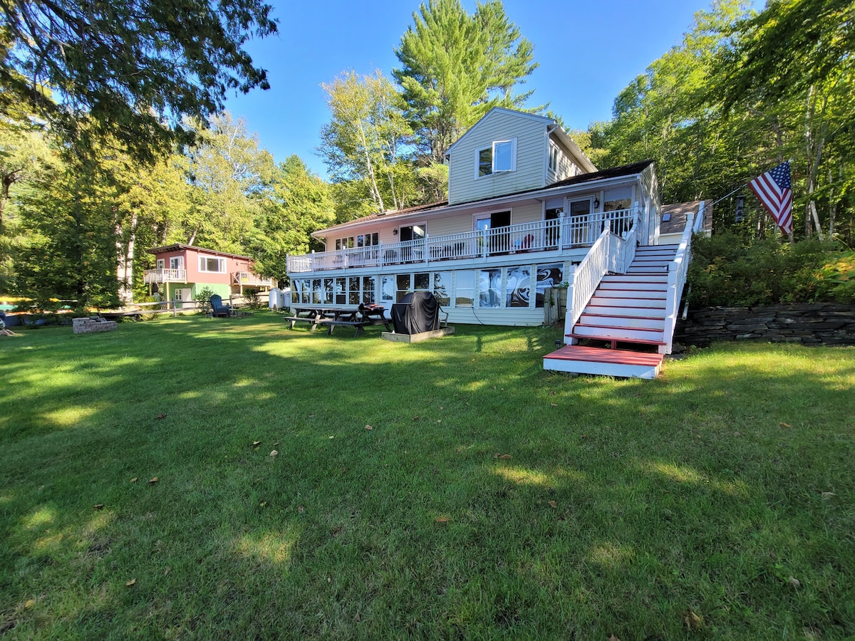 Belgrade Lakes, Maines führende Seenregion. Schönes, ganzjährig geöffnetes Haus am 9 Meilen langen Messalonskee Lake, auch bekannt als Snow Pond. Komm und erlebe das Leben so, wie es sein sollte. Blick auf den Sonnenaufgang vom Hauptschlafzimmer und der Seeterrasse, umgeben von unbebauter bewaldeter Küste. Schwimmen, Kanu und Kajak vom privaten Dock. Seetaucher, Adler, Fischadler und Biber können deine Nachbarn für eine erholsame Woche am See sein. Offenes Konzept Küche Ess- und Wohnzimmer.