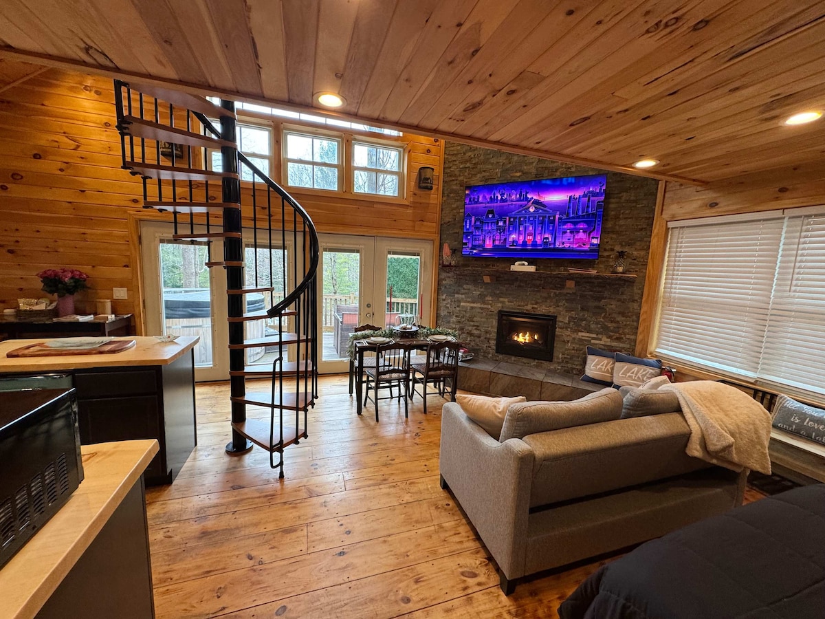 Willkommen in deinem Traum-Baumhaus – versteckt zwischen den Kiefern mit atemberaubendem Seeblick, einem privaten Whirlpool und direktem Zugang zum Belgrade Stream. Das SkyView Treehouse wurde für Paare, Hochzeitsreisende und kleine Familien entworfen und bietet einen luxuriösen Rückzugsort in der Natur. Genieße Sternennächte im Whirlpool, gemütliche Abende am Kamin und ruhige Morgen auf deiner privaten Terrasse. Rustikaler Charme trifft auf gehobenen Komfort in diesem unvergesslichen Kurzurlaub am See.
