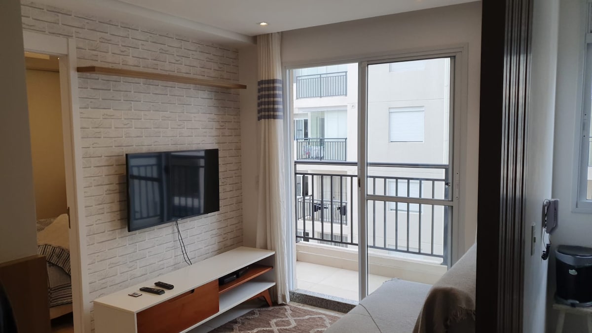 Apartamento com ar condicionado, novo, moderno com localização privilegiada a poucos metros da Feira da Madrugada e do Brás perto do Templo de Salomão da Rua do Gasômetro da Rua 25 de março e da Av.Paulista. Fica em frente à estação de trem da CPTM com conexão com estação Brás de metrô,com rápida conexão para os Bairros conectados por trem ou metrô. Portaria 24 hr. Sinta-se em casa! It is our pleasure to host you!
