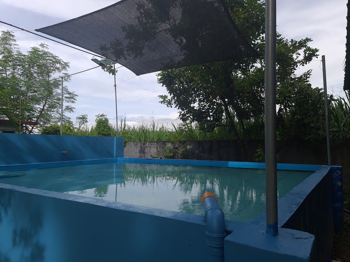 Relax with the whole family at this peaceful place to stay. A nature inspired private resort with relaxing ambiance that is perfect for your families, friends and pets. Enjoy your comfortable accommodations, swimming pool, complete kitchen wares and cooking wares. You can indulge in this 850 sqm. property with it's amenities such as karaoke, billiards, darts, mini stage with our bamboo themed event area. Pets are welcome too!