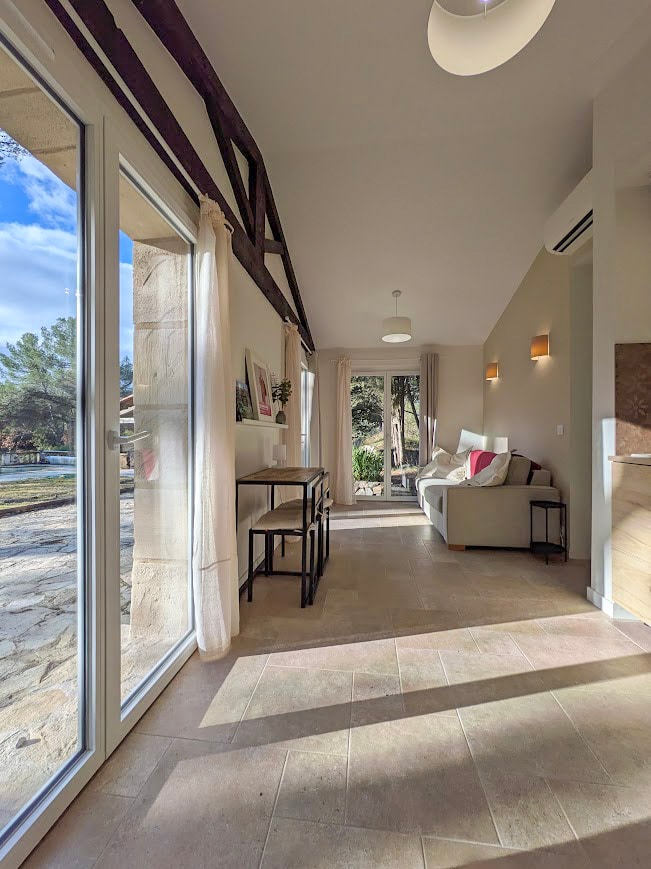 Propriété à 20 mn d Aix en Prov avec vue imprenable sur la Sainte Victoire si chère à Cézanne ce logement vous accueille avec jardin, parking . Accès indépendant 40 m2 env. Patio ombragé où Grande terrasse ensoleillée. Une piscine de 10x7 en saison (du 1er juillet au 31 Août) à partager éventuellement avec nous . Une cuisine intégrée ouverte sur salon coin repas TV, ainsi qu'une suite parentale (king size)180x200 avec sdb et wc, bien sûr le tout climatisé. ❄️ 👍