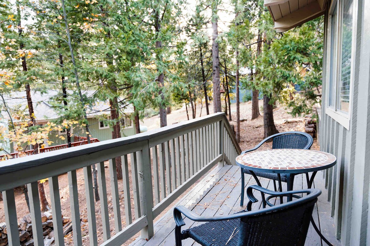 Ruhige und rustikale Familienhütte am Ende einer Sackgasse im malerischen Mi-Wuk Village. Kürzlich renovierte Küche und Badezimmer in der ursprünglichen modernen Atmosphäre der Mitte des Jahrhunderts. Wärme dich vor dem Holzofen auf und setze dich von unserer hochgelegenen Terrasse aus unter die Bäume. Mache dies zu deiner Heimatbasis zum Wandern, Angeln und Schwimmen in der Sierra Nevada. Im Winter kannst du in Dodge Ridge Ski fahren oder Rodeln gehen. Ausgezeichnete WLAN- und Zoom-Anruffunktionen.