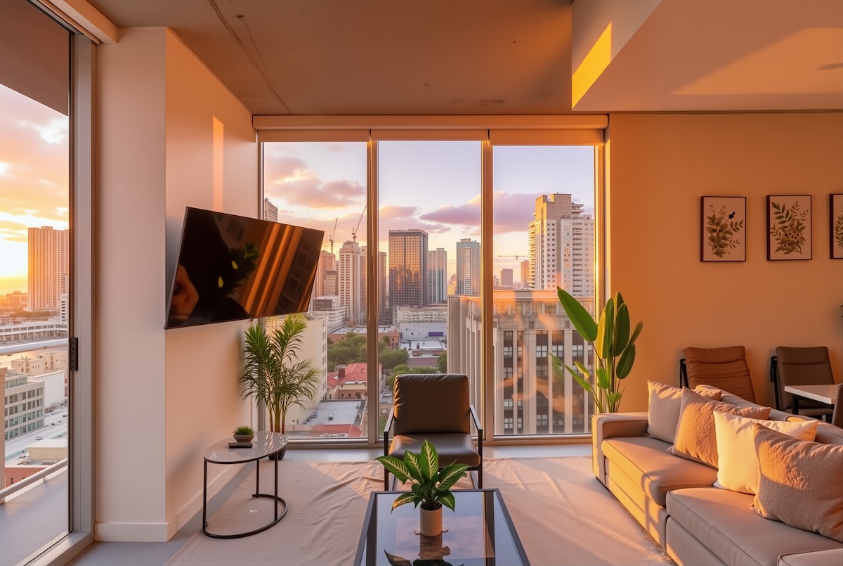 Sunset Suite | Skyline-Blick | Kingsize-Bett + Doppelschlafsofa