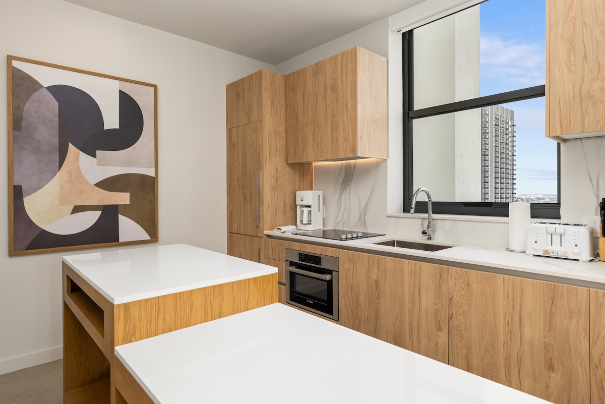 Brandneue Luxus 1BR : Stadtblick + Pool + Parkplatz