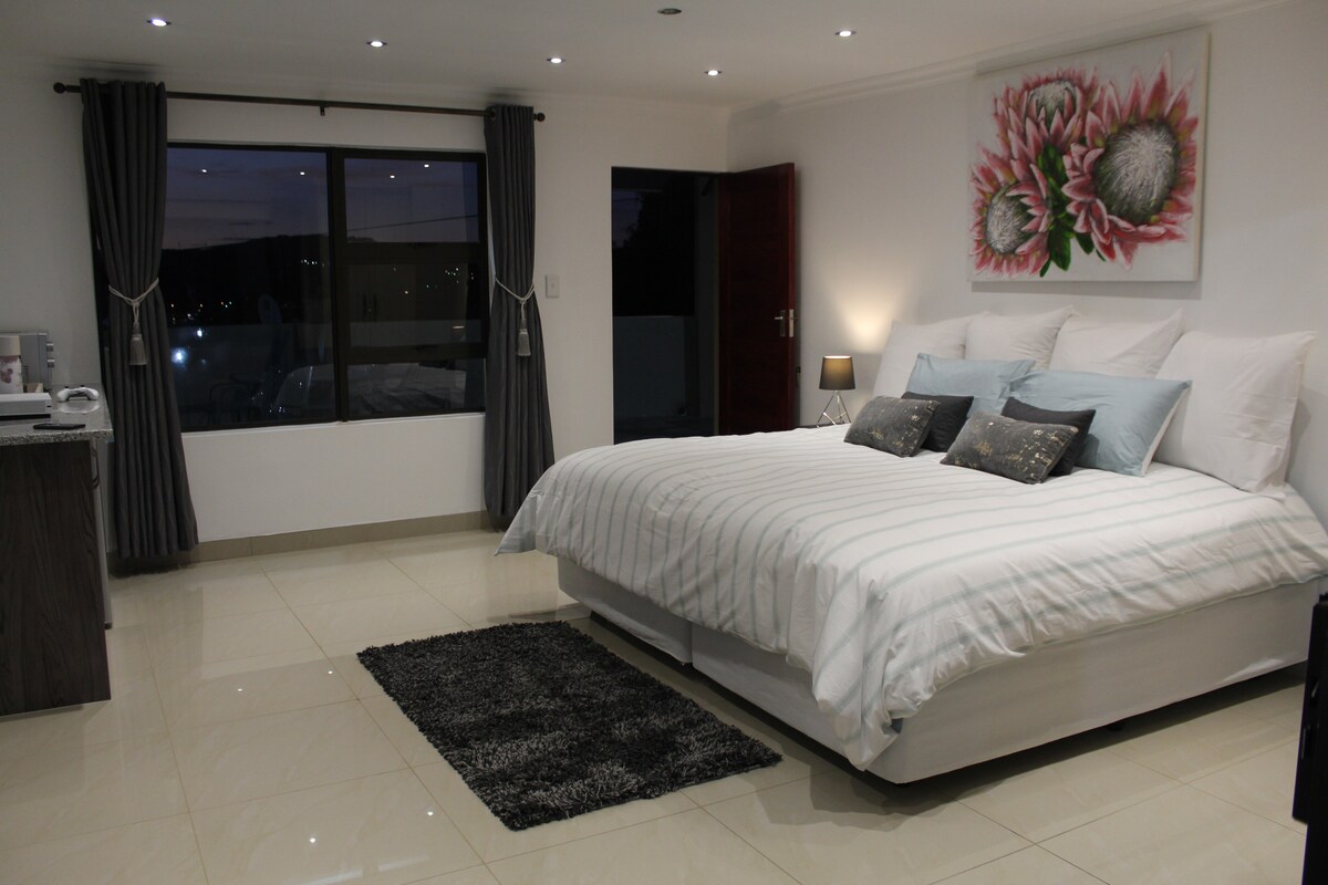 Dieses unabhängige Ferienhaus ist ein 1 Bett, 1 Badezimmer, mit Lounge und Küchenzeile. Es verfügt über einen Dachventilator, WLAN, eine bewaffnete Reaktion, einen Fernseher mit einer Android-Box und einen eigenen Eingang und Parkplatz. Es verfügt über die volle Nutzung des Gemeinschaftspools, der Braai-Bereiche und der Wäscherei [Bügeln kann arrangiert werden] Es verfügt über eigenes Wasser und Gasherd/Backofen. JETZT AUF SOLARSTROM FÜR LASTABWURF UNBEHAGEN