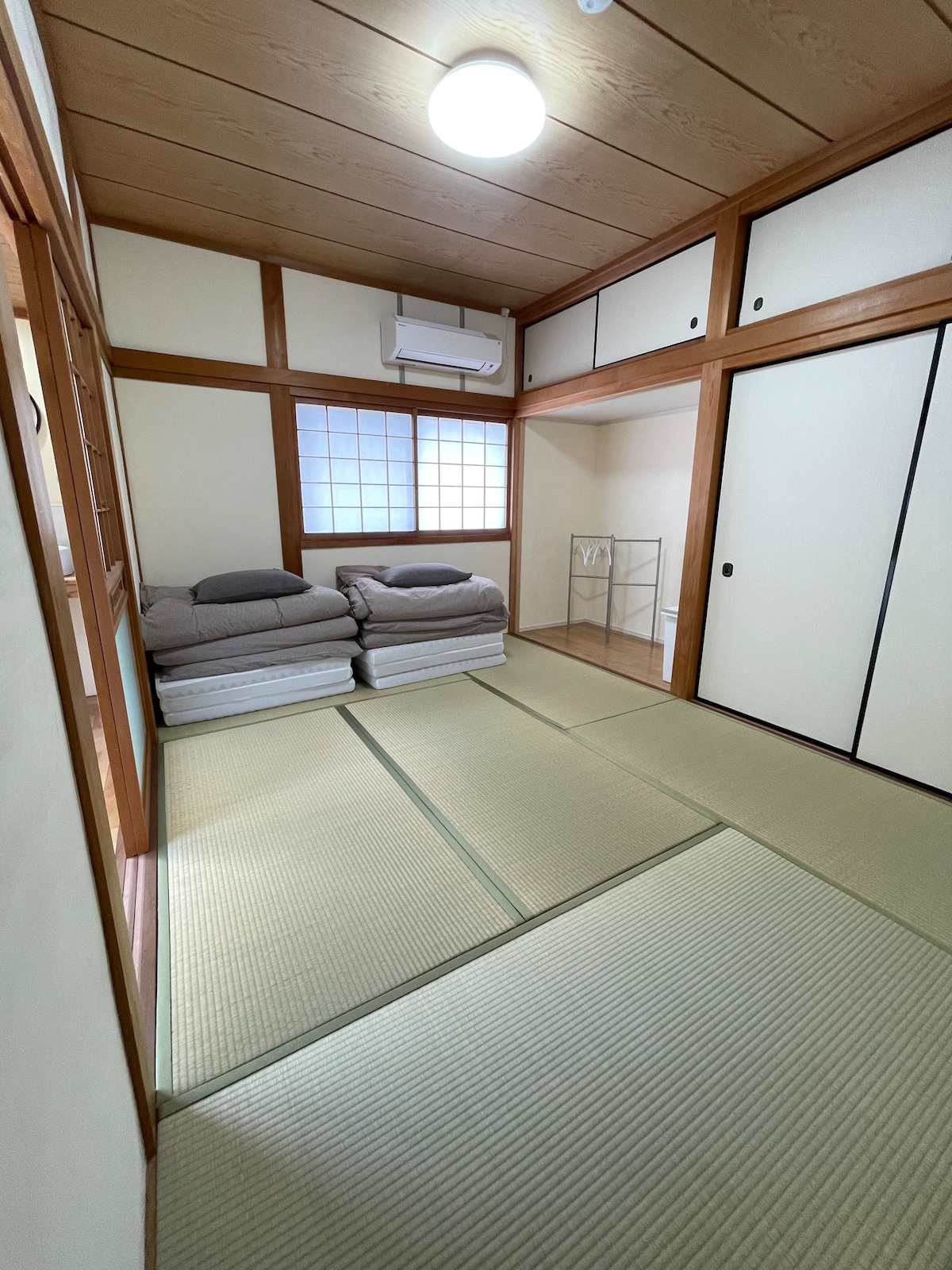 こちらの落ち着いた宿泊先で、ご家族一緒におくつろぎください。 6畳2間の畳部屋(寝室、リビング)で布団を敷いてご就寝ください。 ベッドの表記がありますが布団利用となります。