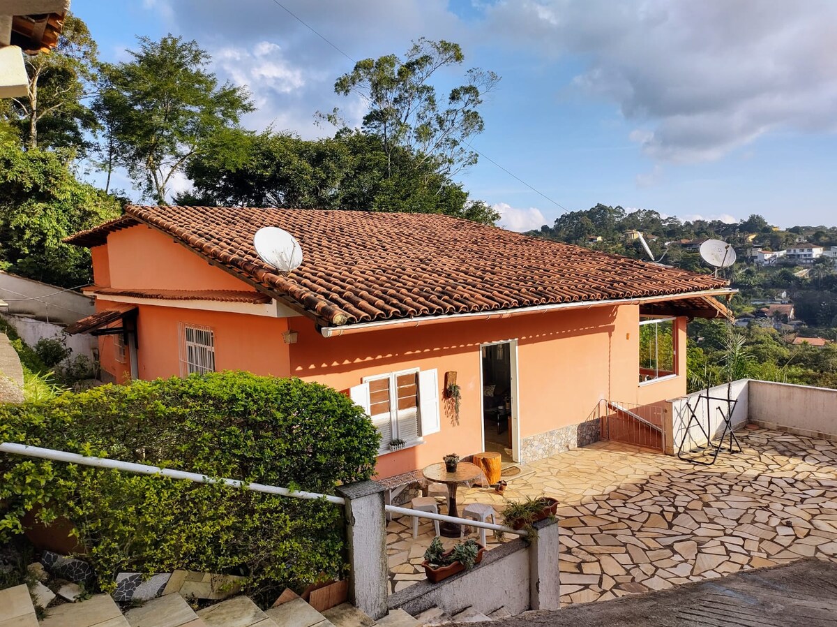 Schönes Ferienhaus in Miguel Pereira mit 4 Suiten und integriertem Raum mit Küche, Grill, Fernseher, Wohnzimmer und Freizeit. Super gemütliches Ambiente, umgeben von atemberaubender Landschaft. Perfekt für ein Treffen von Familie und Freunden (bis zu 18 Erwachsene), die eine entspannende Umgebung und gleichzeitig die Nähe zum Stadtzentrum (3 Minuten mit dem Auto oder 10 Minuten zu Fuß) suchen. Swimmingpool, Grill, Pool- und Tischtennisplatten, Volleyball und Fußball. WLAN. Optionaler Koch/Haushälter.