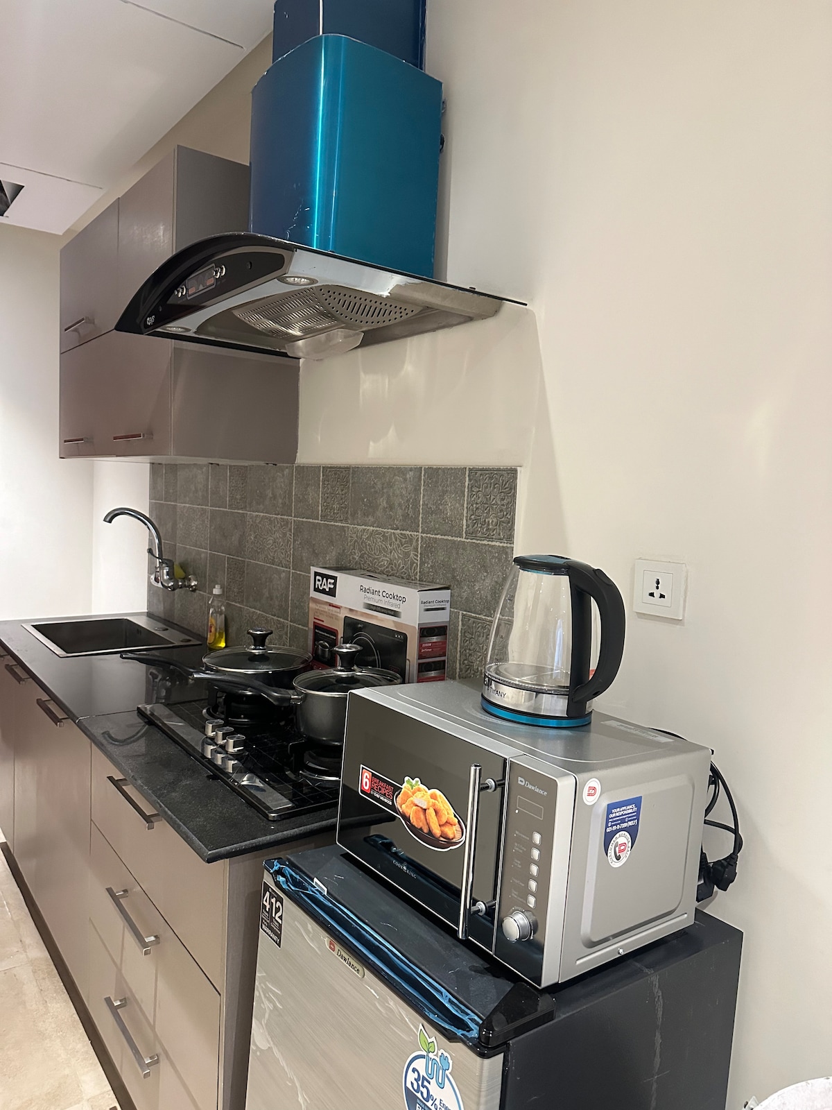 Luxury Studio fully furnished Apartment for couples, friends, solo females and families as well located at Gulberg Lahore Peaceful and private area where everything is in walking distance in the heart of Lahore Safe private & Secure Location - Self Check In with Pin Code - No need to meet anyone for keys - 24/7 Security - Modern Aesthetic design - King Sized Bed With Soft Spring Mattress - AC - Kitchen with Electric Stove - Free Secure Parking - Prime Location -Complimentary Snacks and Tea