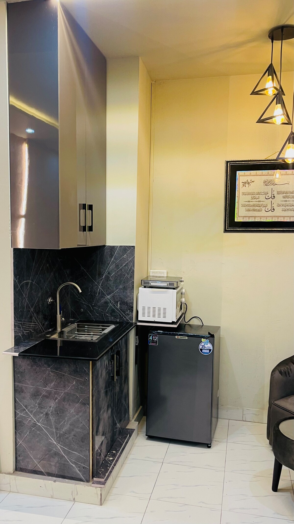 Welcome to Daró — a boutique, design-forward 1-bed apartment in the heart of Zameen Aurum, Gulberg III. Thoughtfully crafted with soft tones, modern furnishings and a calm hotel-like ambience, this space offers a private balcony, a stylish lounge with a 55” LED, a fully equipped kitchenette, fast WiFi, fresh linens, and 24/7 hot water. Ideal for married couples, business travelers, weekend escapes and long-term stays seeking comfort, convenience and a truly elevated experience in Lahore. 🌙✨