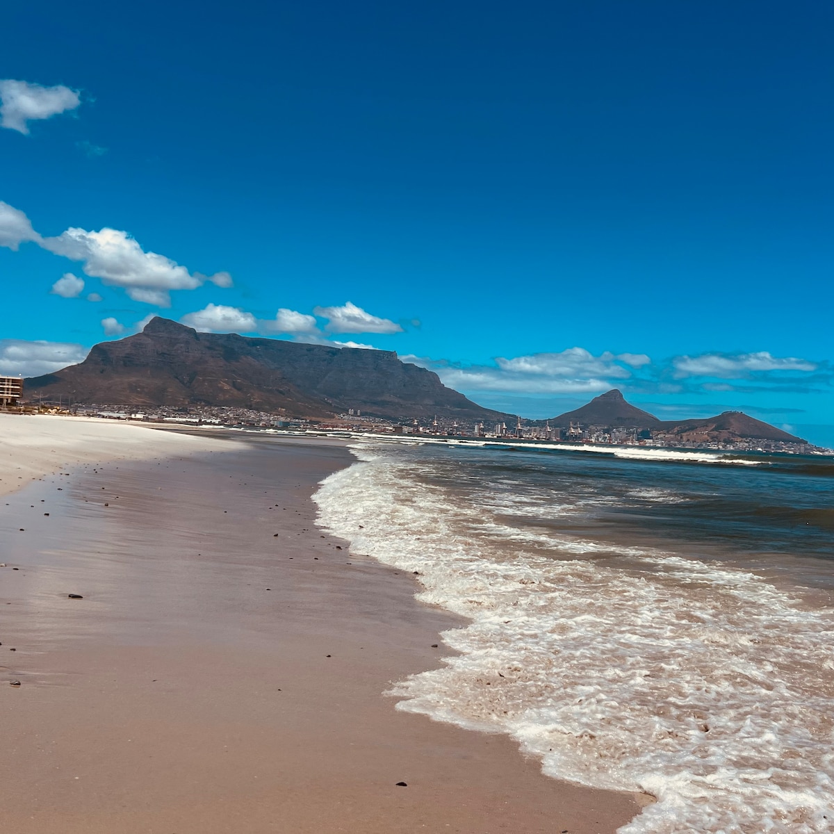 Spektakuläre Aussicht auf den Tafelberg direkt am Strand