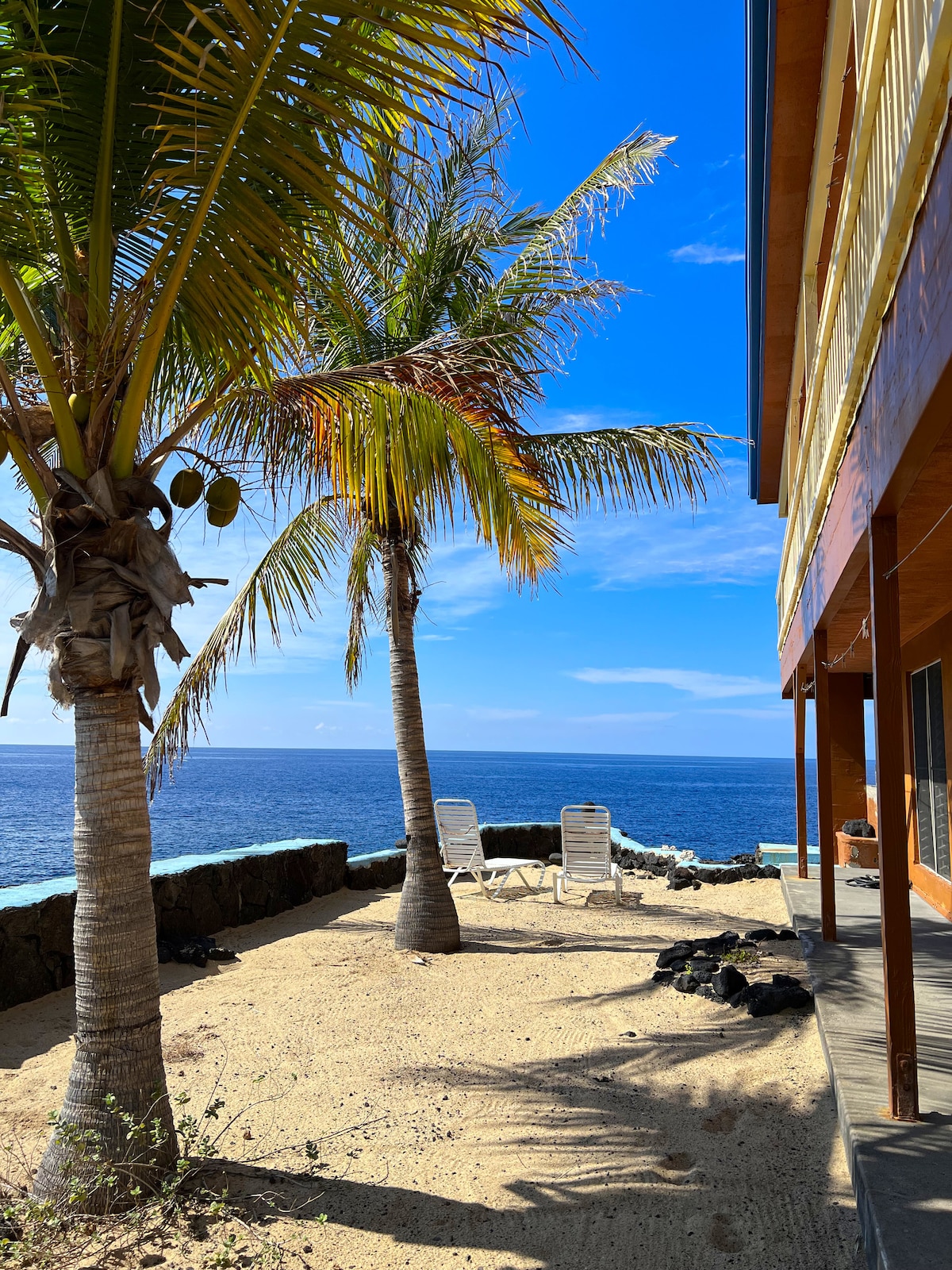 Wake up to some of the best ocean views in the area from this peaceful, modern studio. Guests often say that one night is just not enough to truly enjoy this special oasis. Ideal for those seeking serenity away from the crowds, the space offers a KING SIZE bed, AIR CONDITIONING, convertible sofa for extra guest & private washer/dryer. A well-equipped indoor/outdoor kitchenette. Enjoy a covered lanai, gas fire pit, gas grill, fast Wi-Fi, smart TV, beach gear, essentials for a relaxed stay.