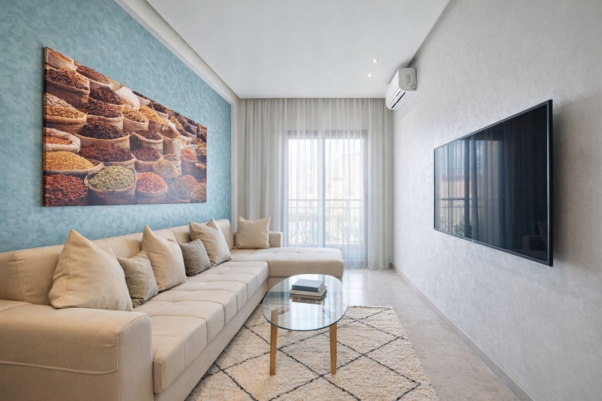 Willkommen in Marrakesch, willkommen zu Hause an diesem Ort, der ideal zwischen Gueliz und Hivernage liegt, nur einen Katzensprung von allem entfernt: Restaurants, Cafés, Geschäfte...Lassen Sie sich vom Rhythmus der ockerfarbenen Stadt mitreißen! Die Wohnung ist ein kleines helles Refugium, praktisch, warm und gemütlich, perfekt zum Erholen nach einem anstrengenden Tag. Genießen Sie die Sonne und das urbane Ambiente mit Blick vom Balkon. Ein authentischer Ort für einen ruhigen Aufenthalt im Herzen des Trubels. SmartTV, Netflix, Glasfaser