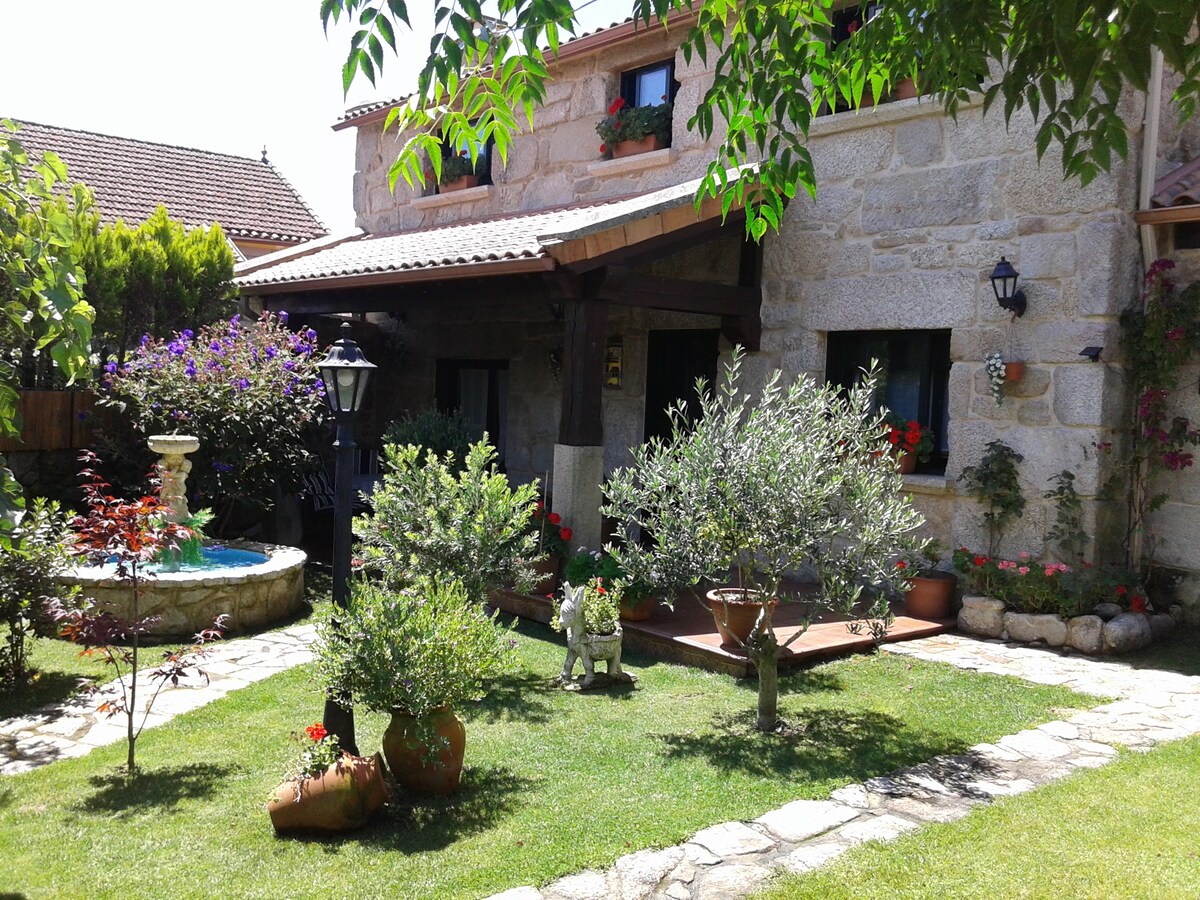 Chalet in ländlicher Umgebung, komplett neu und modern, 1200 m Garten mit Pool, Grillplatz und Tischtennis. Ideal für Paare, Familien und Gruppen. Sehr gut verbunden mit einer Schnellstraße zu den Strandgebieten (Sanxenxo, A Lanzada, O Grove, Combarro, Isla de Arousa..) und Städten wie Santiago de Compostela. Es ist 5 Minuten von der Stadt Pontevedra entfernt. In der Nähe gibt es ein Reitzentrum und mehrere Furanchos (typische Küche) zum Essen. Möglichkeit der Unterbringung von bis zu 12 Personen.